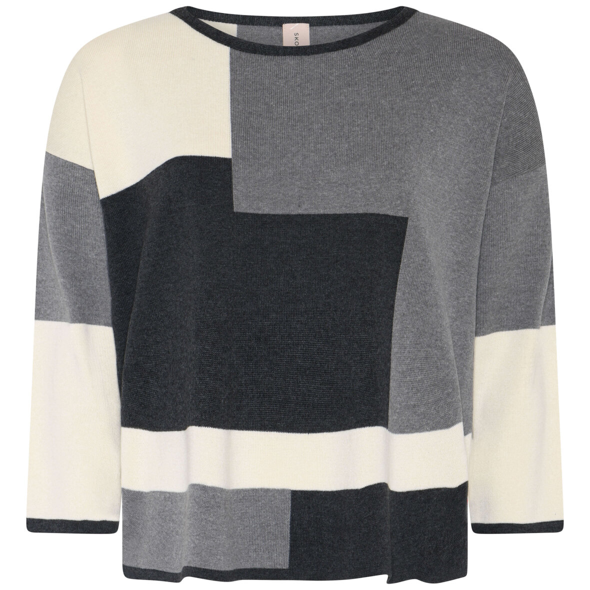 Skovhuus striktrøje i et flot firkantet mønster i grå og creme farver.