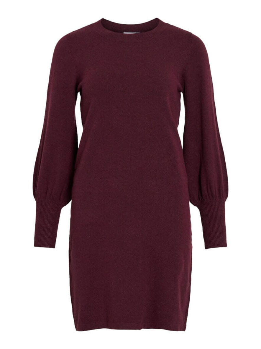 Vila strikket kjole i en flot dyb bordeaux rød farve. Strikkjolen er lavet i en lækker blød kvalitet, som er yderst behagelig at have på.