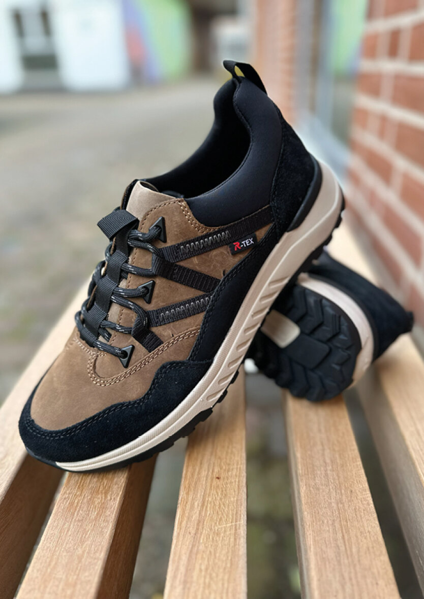 Rieker herresko i et flot brun/sort farvet design, som kombinerer stil, komfort og funktionalitet.
