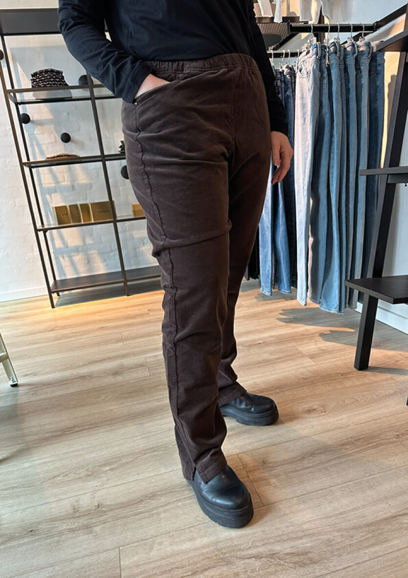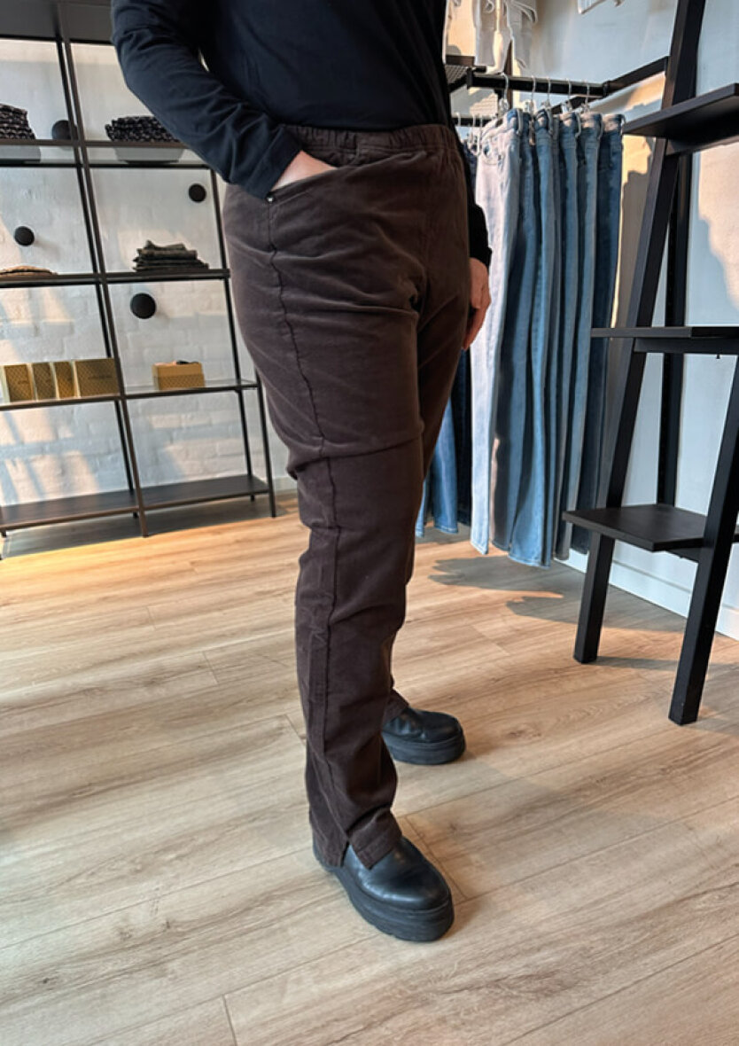 Fløjl er en tidløs klassiker, der kombinerer luksuriøs blødhed med et elegant udtryk. Det karakteristiske stof giver buksen struktur og dybde, samtidig med at den er behagelig at have på.