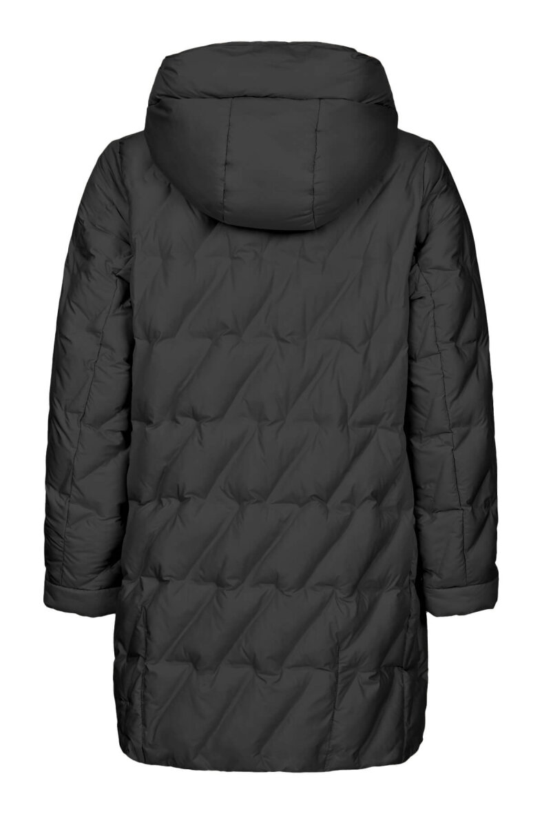 Frandsen jakke i en flot og alsidig sort farve. Jakken er med vandret quiltning, der sikrer både komfort og effektiv varmeisolering, samtidig med at det skaber et flot design.