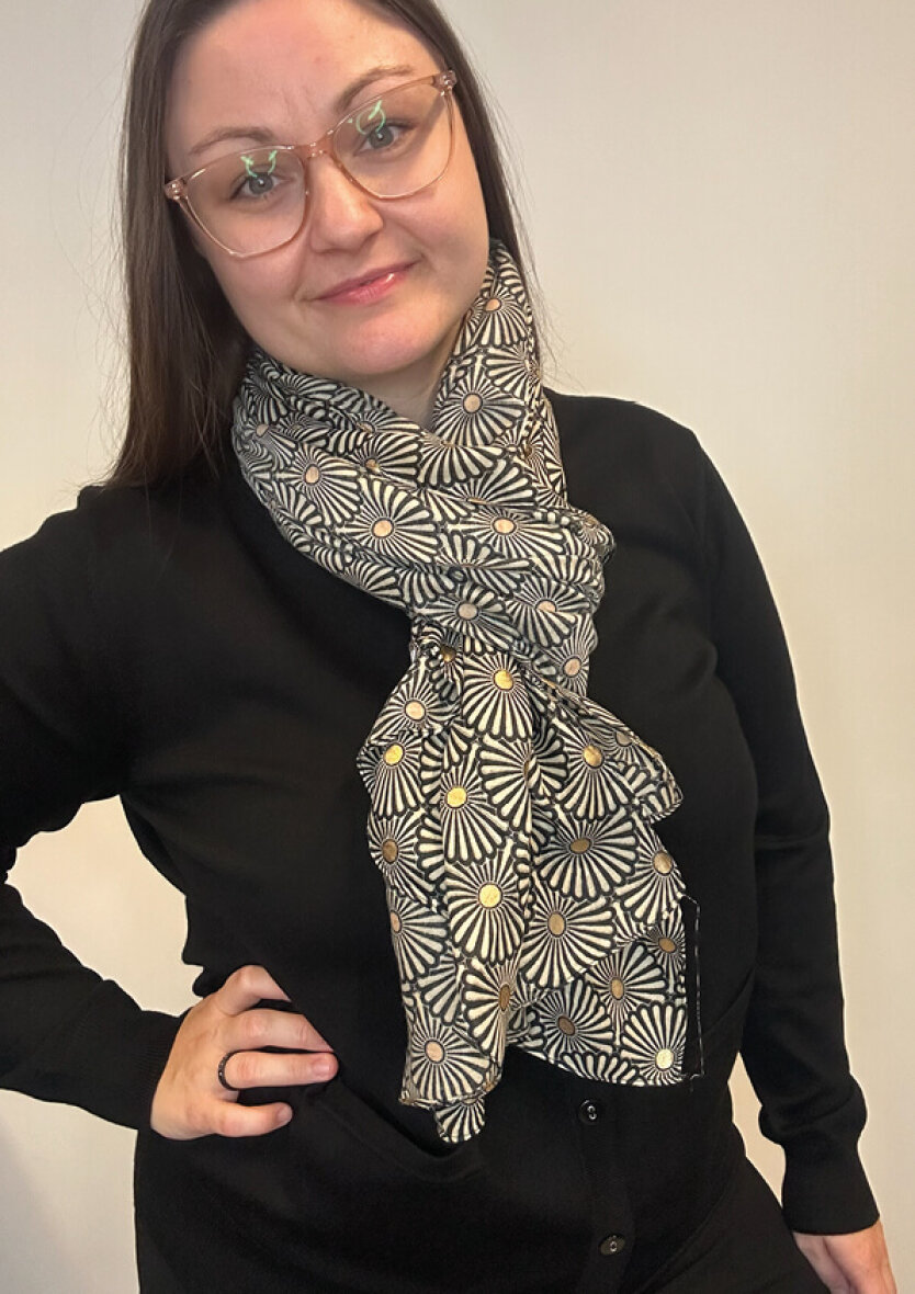 Et smart tørklæde til at holde halsen varm, samtidig med at den kan bruges som en fin accessoires til dit outfit.
