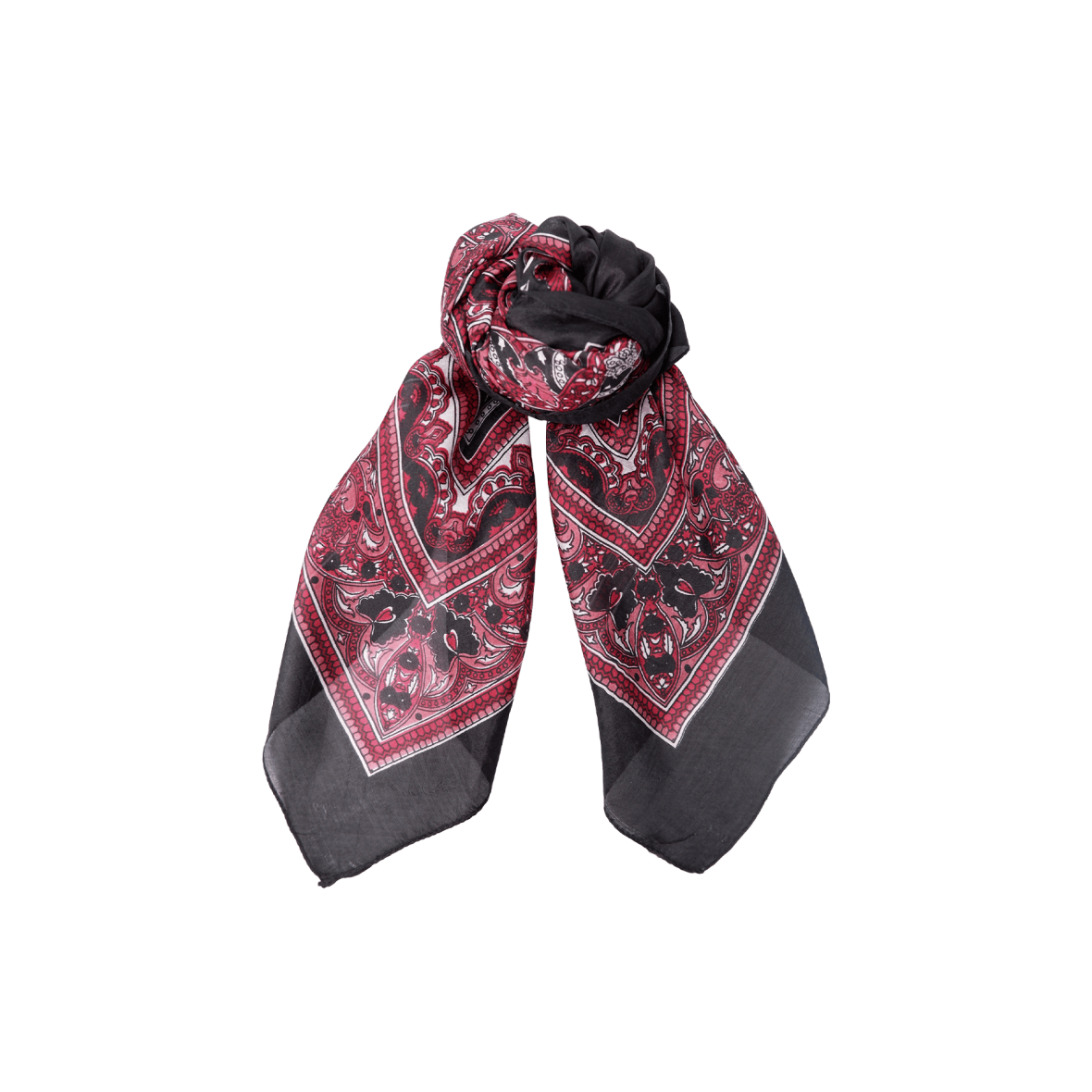 Black Colour tørklæde i et luksuriøst silkekvalitet og unikt print i vinrøde toner.