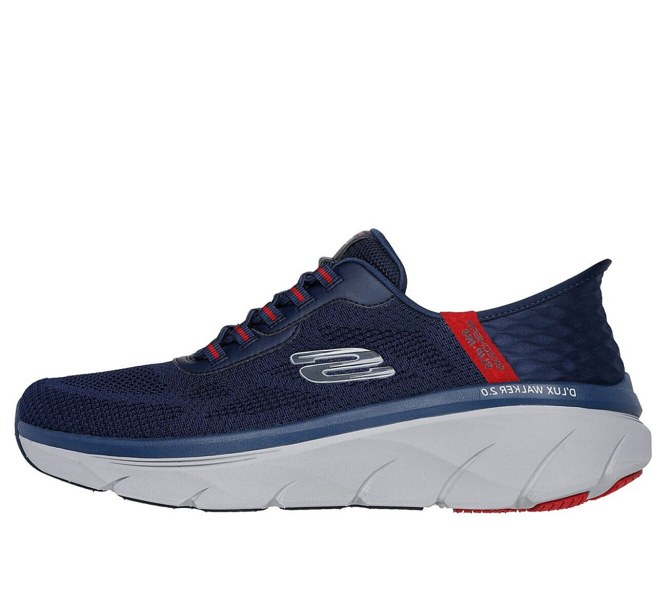 Smarte hands free slip-ins fra Skechers i en flot navy blå farve. Herreskoen er lavet i strikket mesh tekstil med stretch fit og elastiksnøre over vristen, så skoen sidder godt til på foden. Skoen er med røde detaljer, som giver skoen et fedt design.