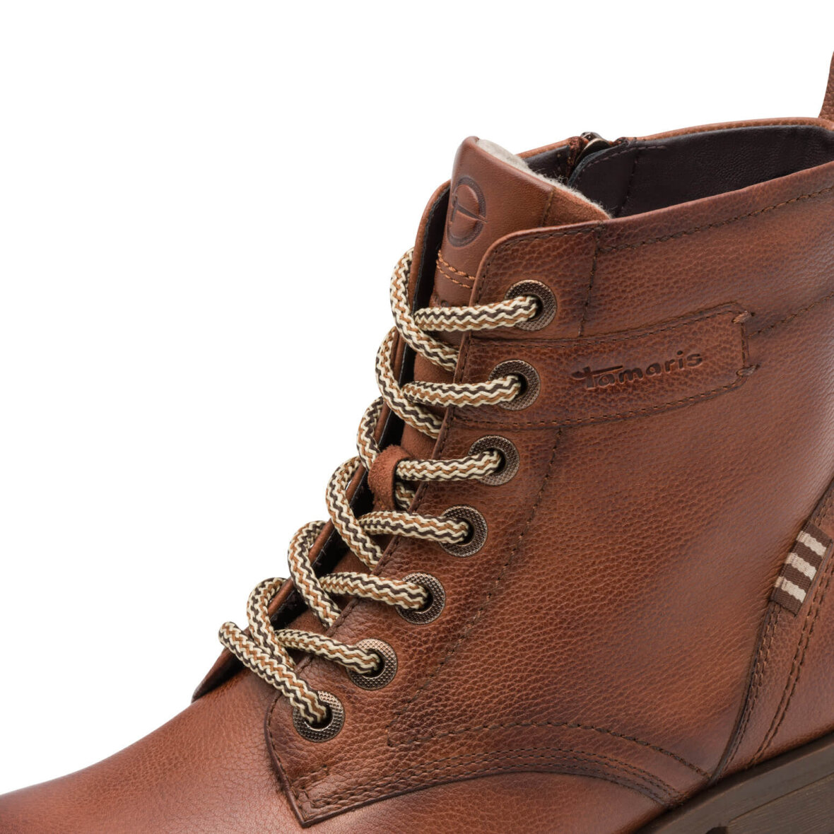 Tamaris støvler i en alsidig brun farve i et tidsløst design. Støvlen justeres med snørebånd på fronten og lukkes med lynlås på indersiden, der sidder perfekt og er nem at tage af og på. Uanset om du bevæger dig gennem byens gader eller ud i naturen, er dette din pålidelige følgesvend – til et look, der føles lige så godt, som det ser ud.