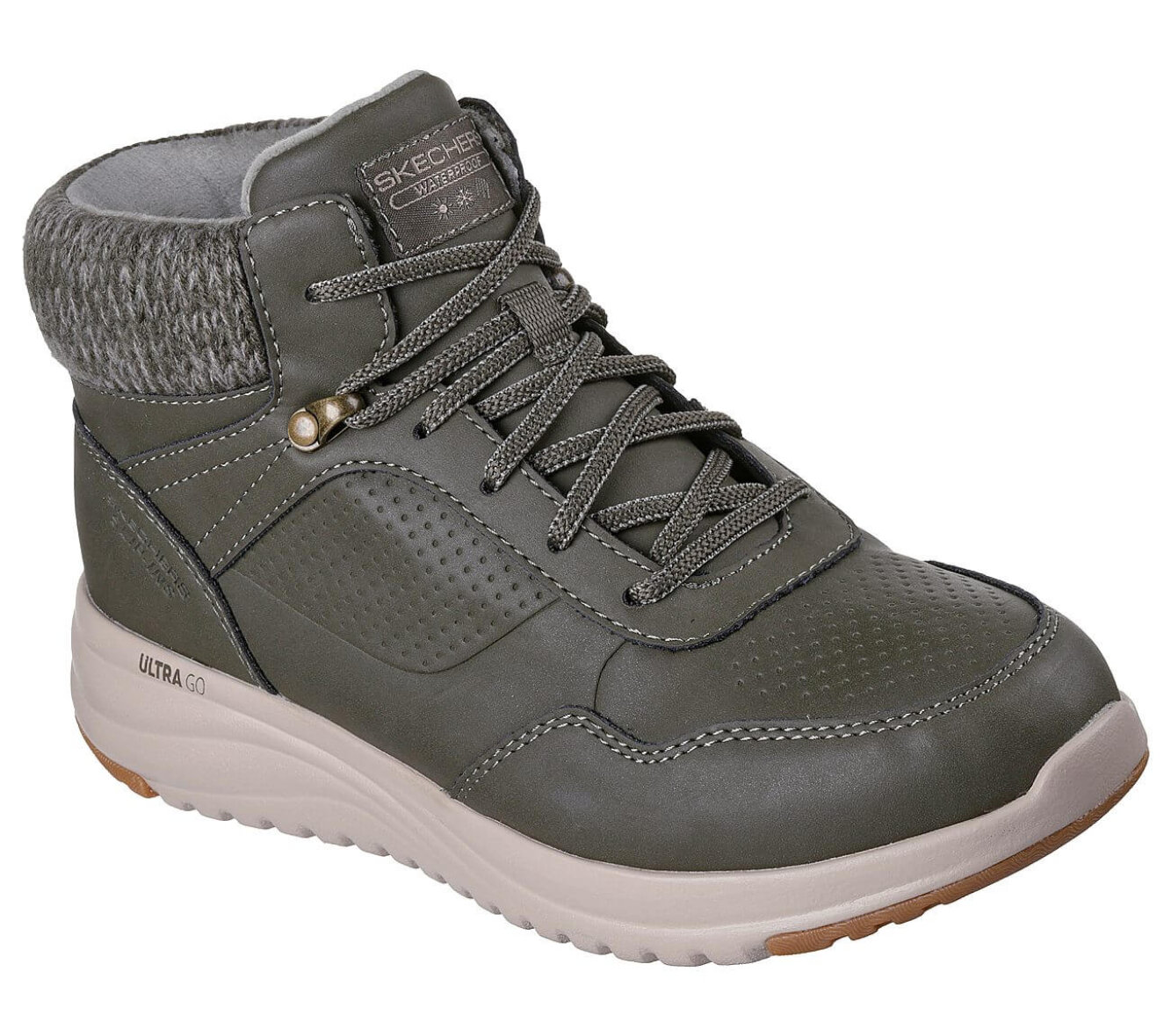 Smart vinterstøvle til kvinder fra Skechers i modellen On-the-GO Stellar - Ariana. Denne vandtætte vinterstøvle kombinerer praktisk funktion og smart design med snørelukning og en overdel i vegansk læder, behandlet med 3M Scotchgard™ for effektiv vand- og pletafvisning.