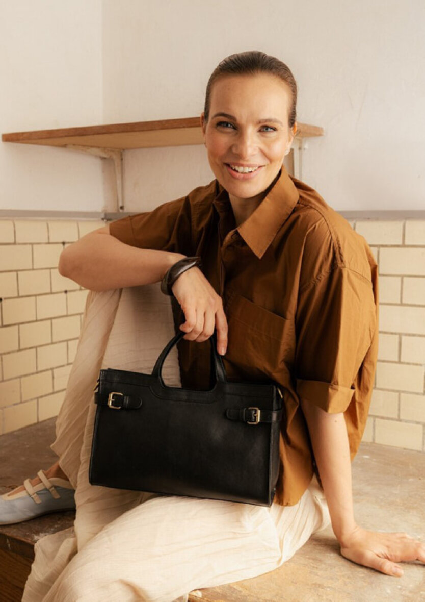 Tasken er fremstillet i en unik proces, hvor hver enkelt del skæres i hånden og poleres med voks for at opnå en karakteristisk, blød finish. Denne proces bevarer læderets rå skønhed, hvor naturlige variationer understreger de unikke træk ved hver taske.