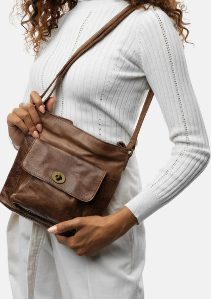 Håndlavet crossover i den velkendte Kay Urban taske fra Re:Designed. Tasken er lavet i en skøn mørkebrun farve (woodsmoke). Tasken er lavet i 100% blød læder kvalitet.