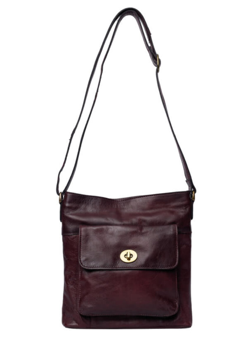 Super flot håndlavet crossover i den velkendte Kay Urban taske fra Re:Designed. Tasken er lavet i en dyb bordeaux rød (cherry) farve. Tasken er lavet i 100% blød læder kvalitet.