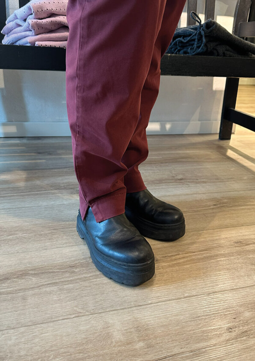 Længden på buksen er indvendige mål, og der kan være 1-2 cm difference.