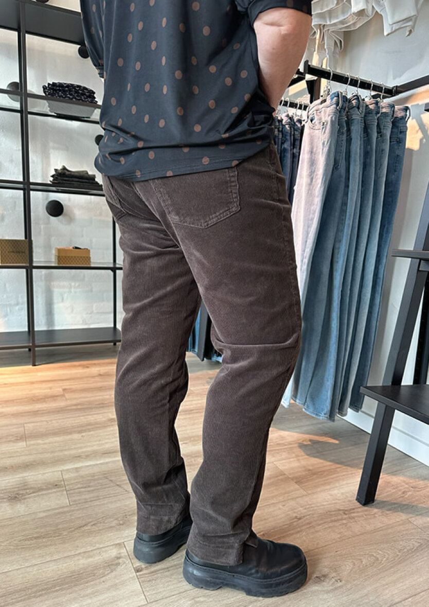 Bessie jeans i modellen Light-FL er lavet i en lækker fløjls kvalitet i en moderne brun farve, som er nem at style til diverse overdele i sæsonen.