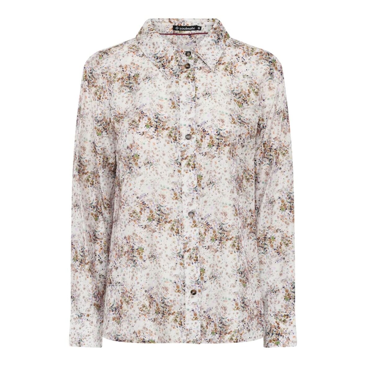 Soulmate skjorte i en lys sandfarvet base med multifarvet mønster. Skjorten er lavet i en let og luftig viskose og nylon kvalitet.