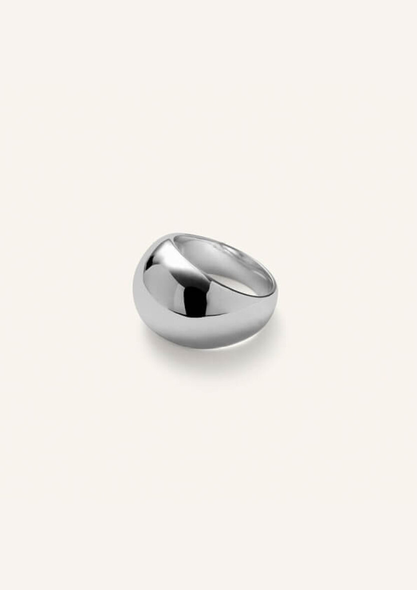 Ringen er et karakterfuldt statement-smykke, hvor form og følelse smelter sammen. Den skulpturelle silhuet leger med bevægelse og balance, mens den spejlblanke finish kaster lyset smukt tilbage og fremhæver ringens sanselige kurver.