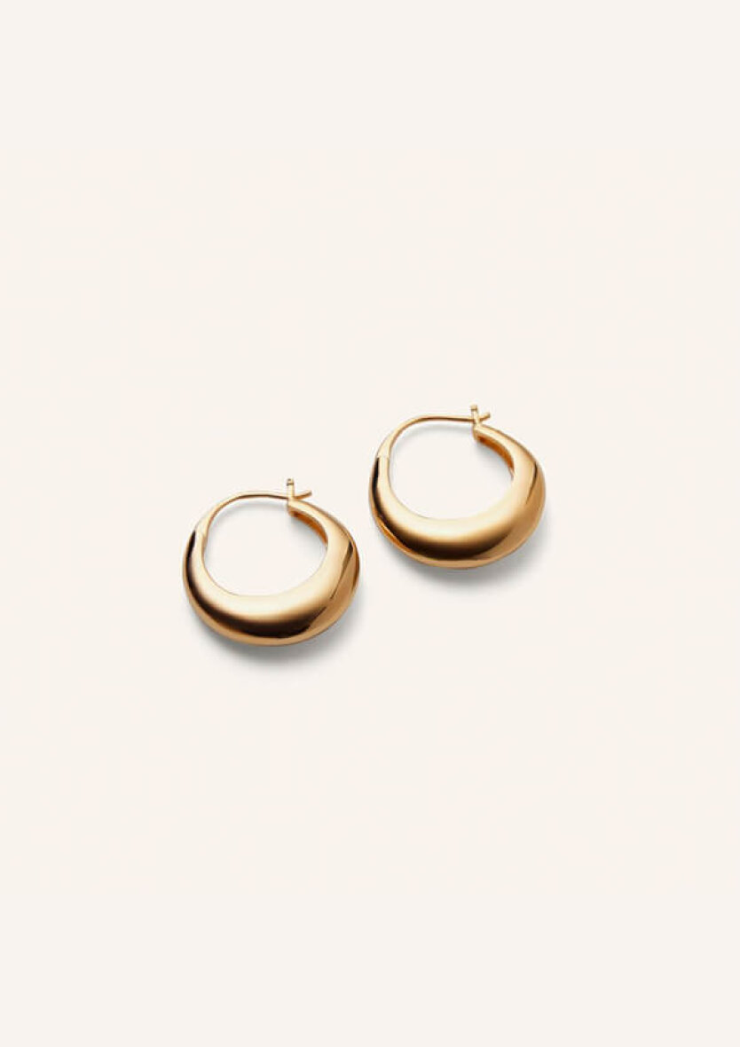 Den glatte, blankpolerede overflade står i smuk kontrast til de bløde linjer og fanger lyset på en raffineret måde. Øreringen er hul indvendig, hvilket sikrer lethed og høj komfort.