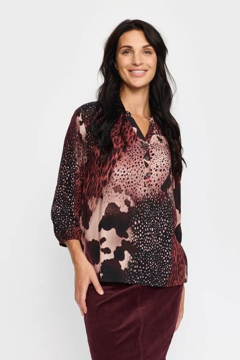 2-Biz bluse i modellen MAJA er et stilfuldt valg til dig, der elsker unikke prints og komfort i hverdagen. Blusen er lavet i en let viskosekvalitet.