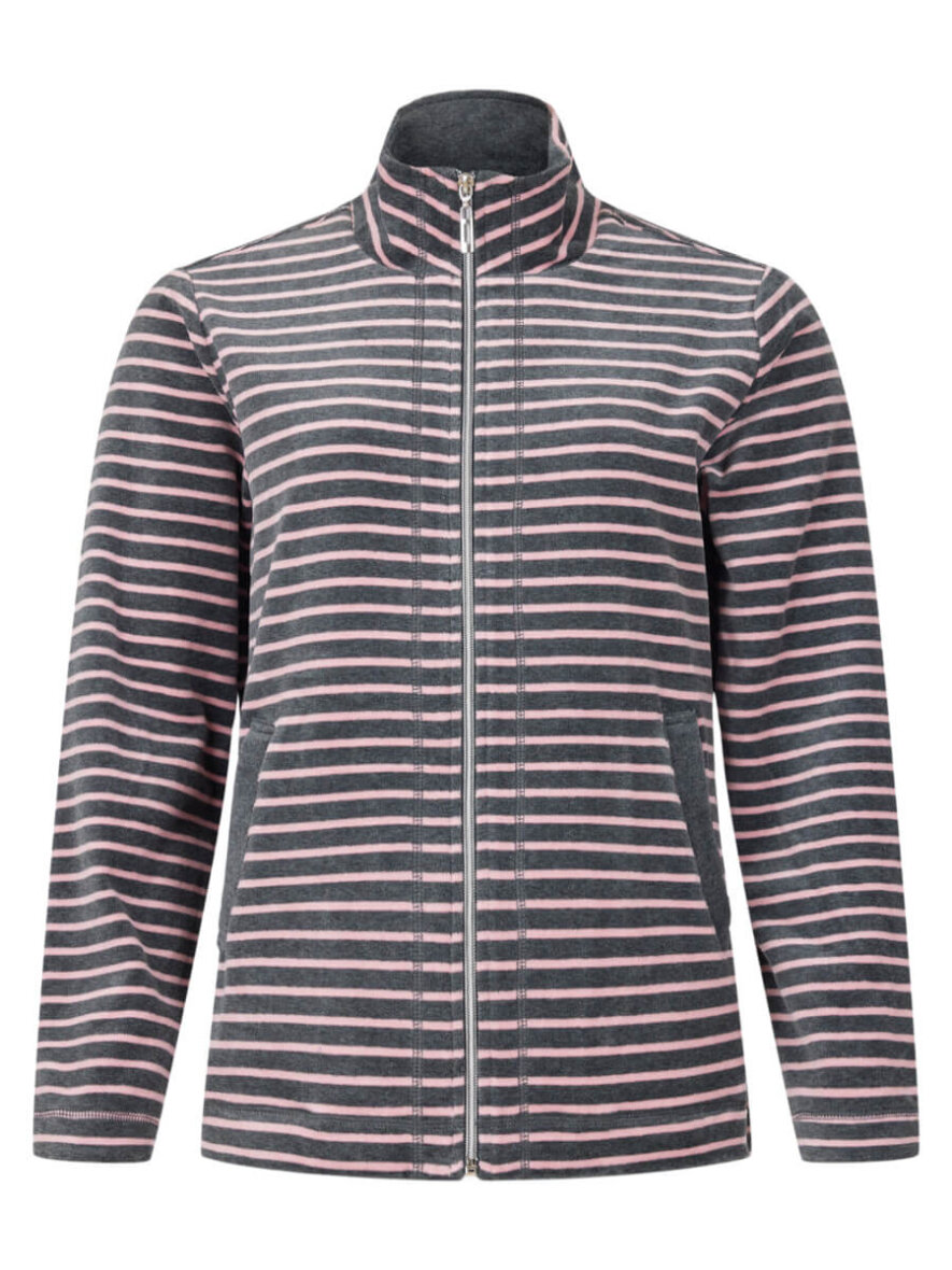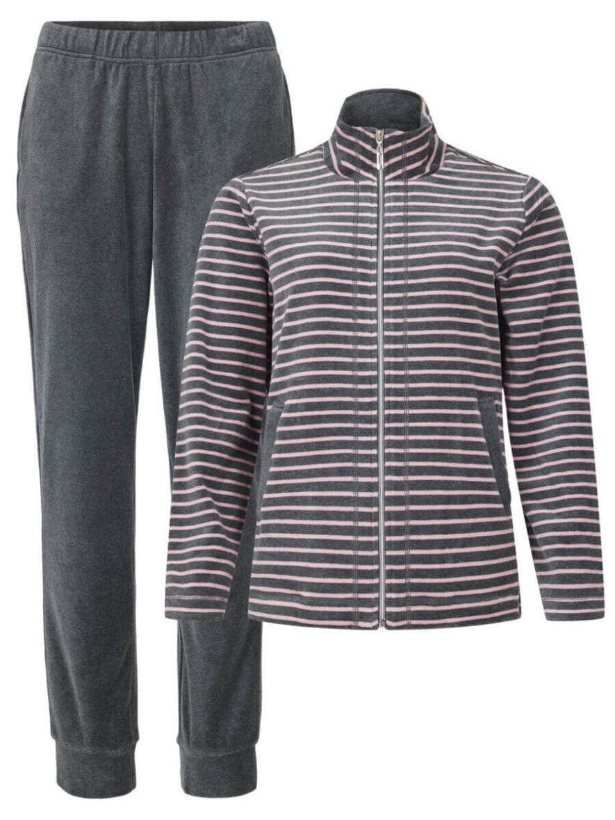 Dejlig blødt sæt fra Brandtex i et skønt grå/rosa stribet mønster på overdelen og ensfarvet grå buks. Perfekt hjemmesæt til afslapning.