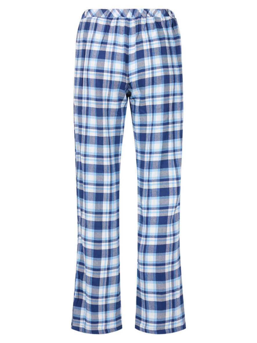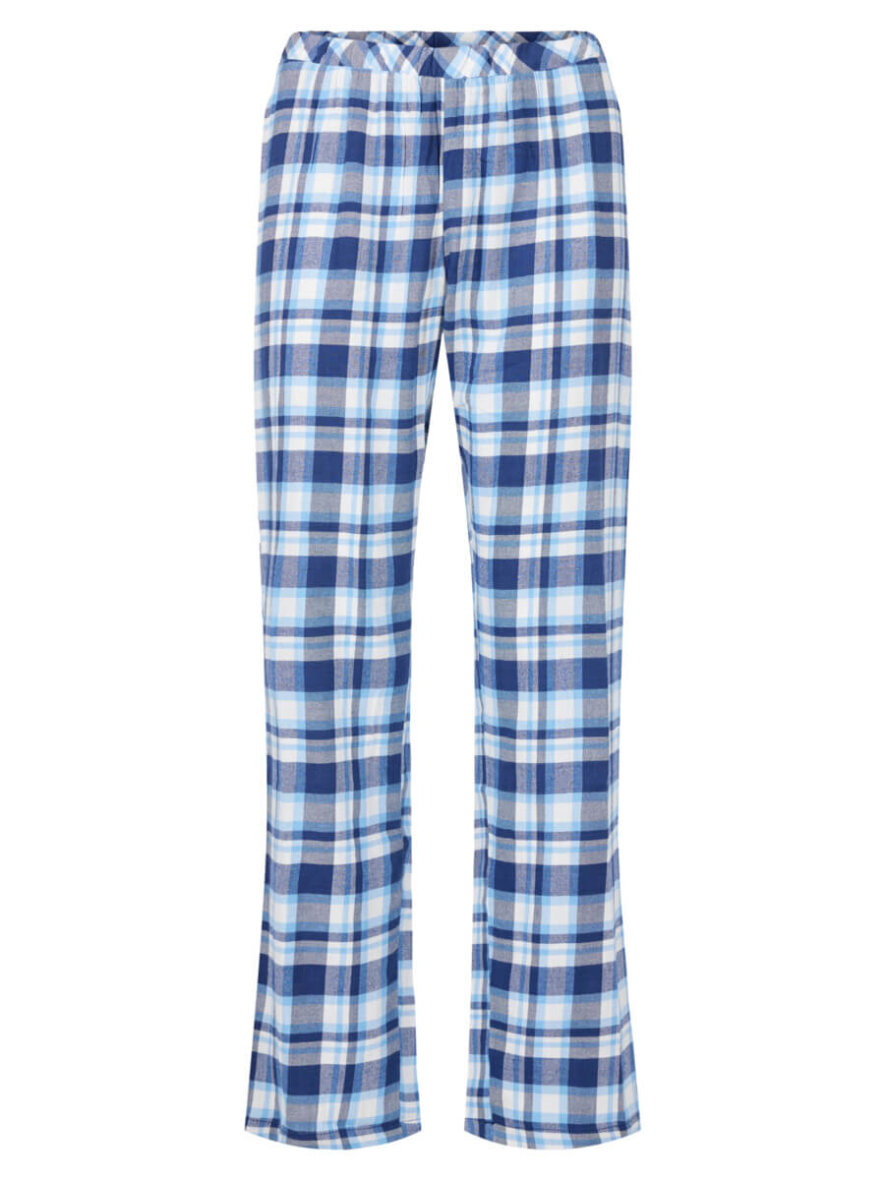 Buksen i samme ternet design er med lange ben og elastik i taljen. Et skønt pyjamas sæt som man med sikkerhed kan sove godt i.