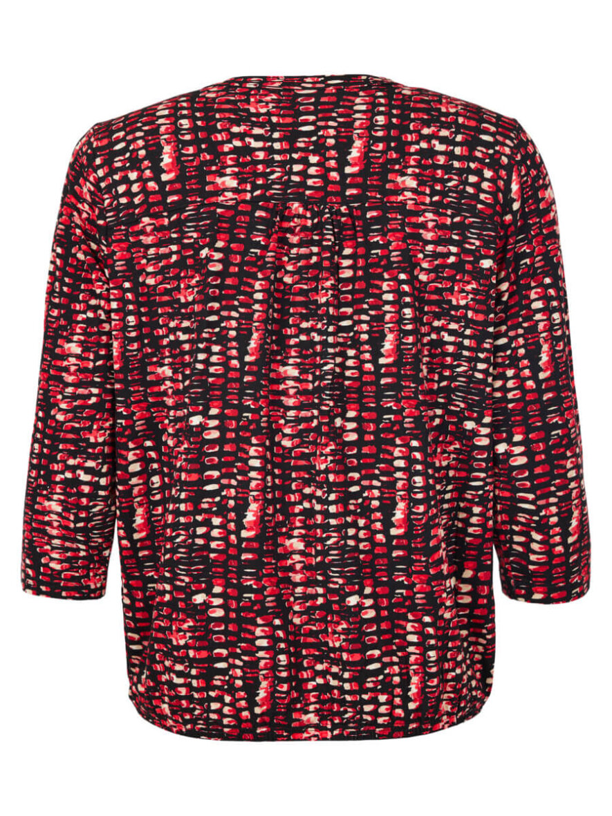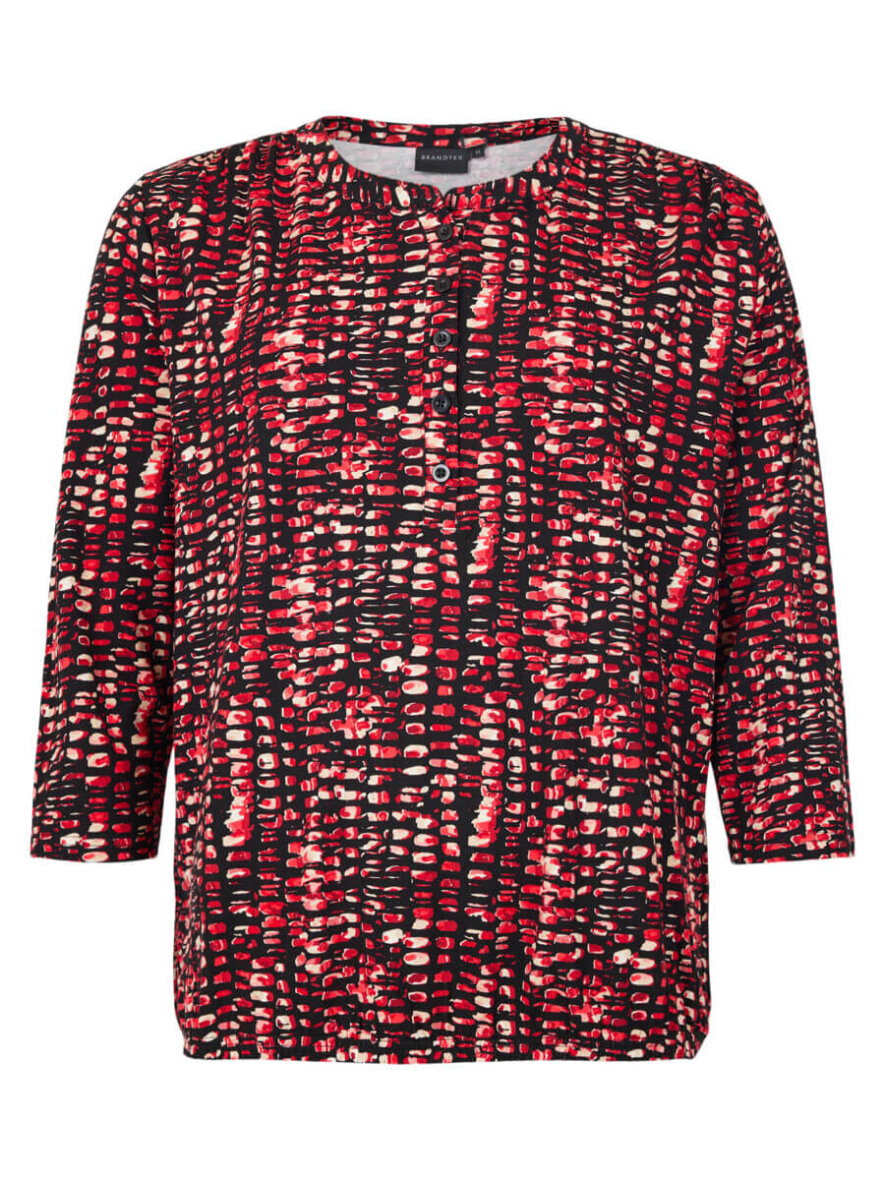 Brandtex bluse i et skønt print i røde og sorte toner. Det grafiske print giver et pift til outfittet, hvad enten det er til hverdagsbrug eller en festlig begivenhed.