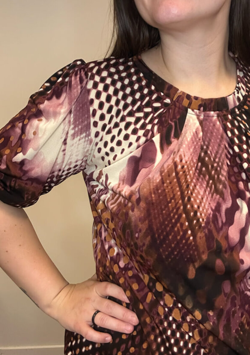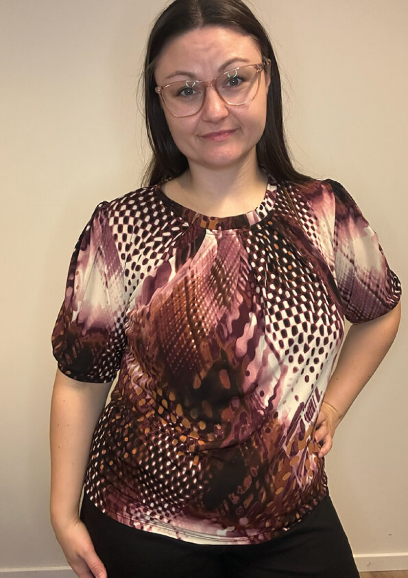 En komfortabel bluse i det smukkeste print, som passer til mange forskellige anledninger.