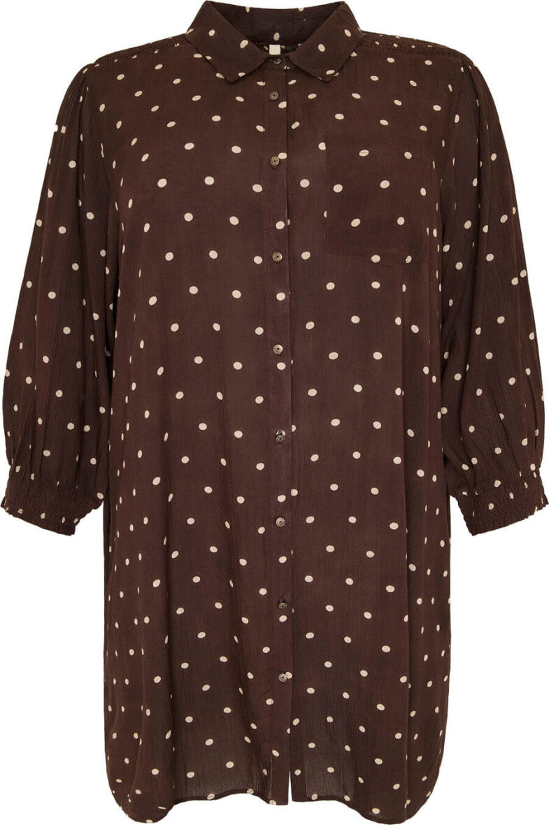 Cassiopeia tunika / kjole i en flot brun farve med lysebrunt prikket design. Tunikaen er lavet i en let og luftig viskose kvalitet.