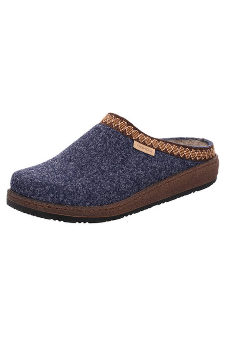 Rohde hjemmesko til kvinder i en skøn filtkvalitet. En simpel og behagelig hjemmesko, som omslutter dine fødder blødt og sikrer et behageligt fodklima. Den bløde, udtagelige filt-indersål giver ekstra komfort, mens den lette PU-sål med skridsikre egenskaber gør hvert skridt behageligt. En hjemmesko, du ikke får lyst til at tage af. En fin detalje er den mønstret kan langs åbningen.