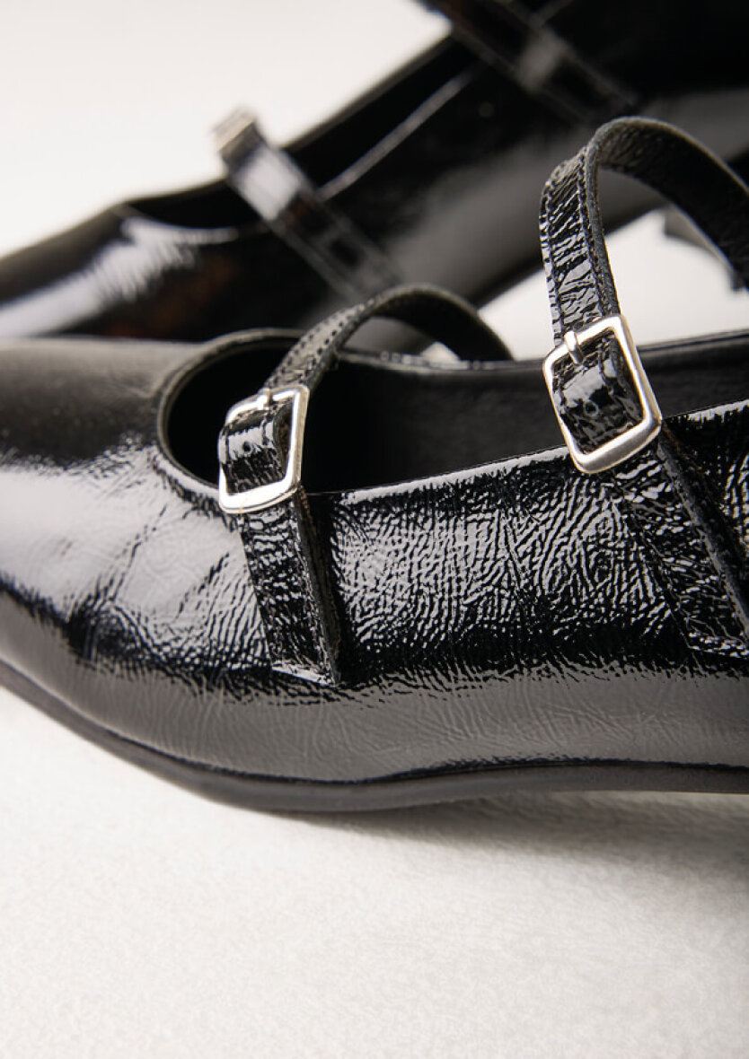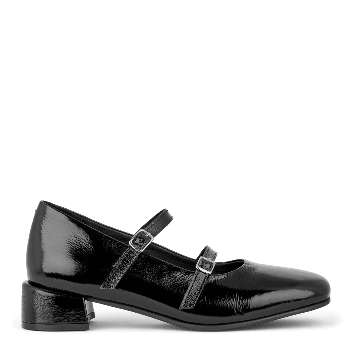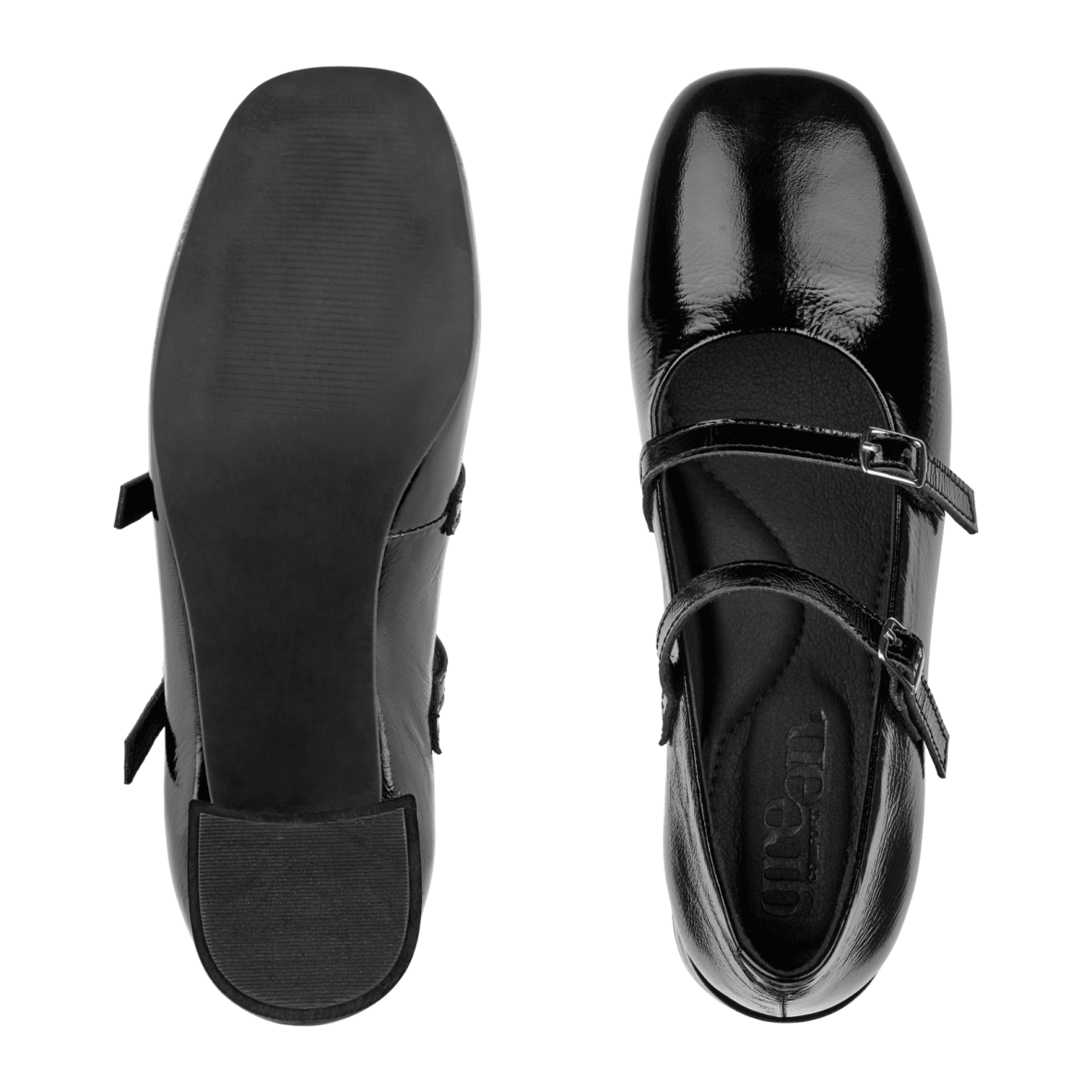Green Comfort pump i et elegant og tidsløst design. Modellen Paris Phoebe pump er udført i sort skind med en blank lak finish, der tilfører et sofistikeret udtryk.