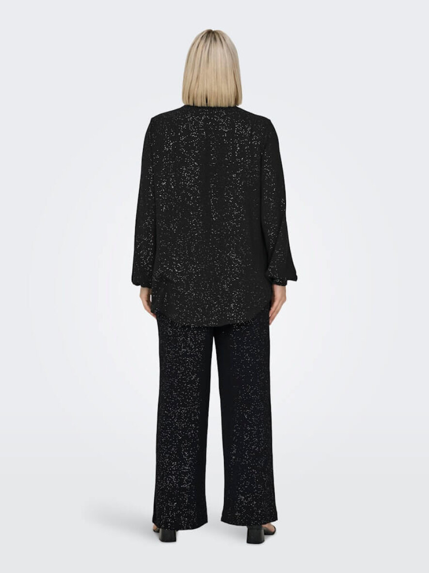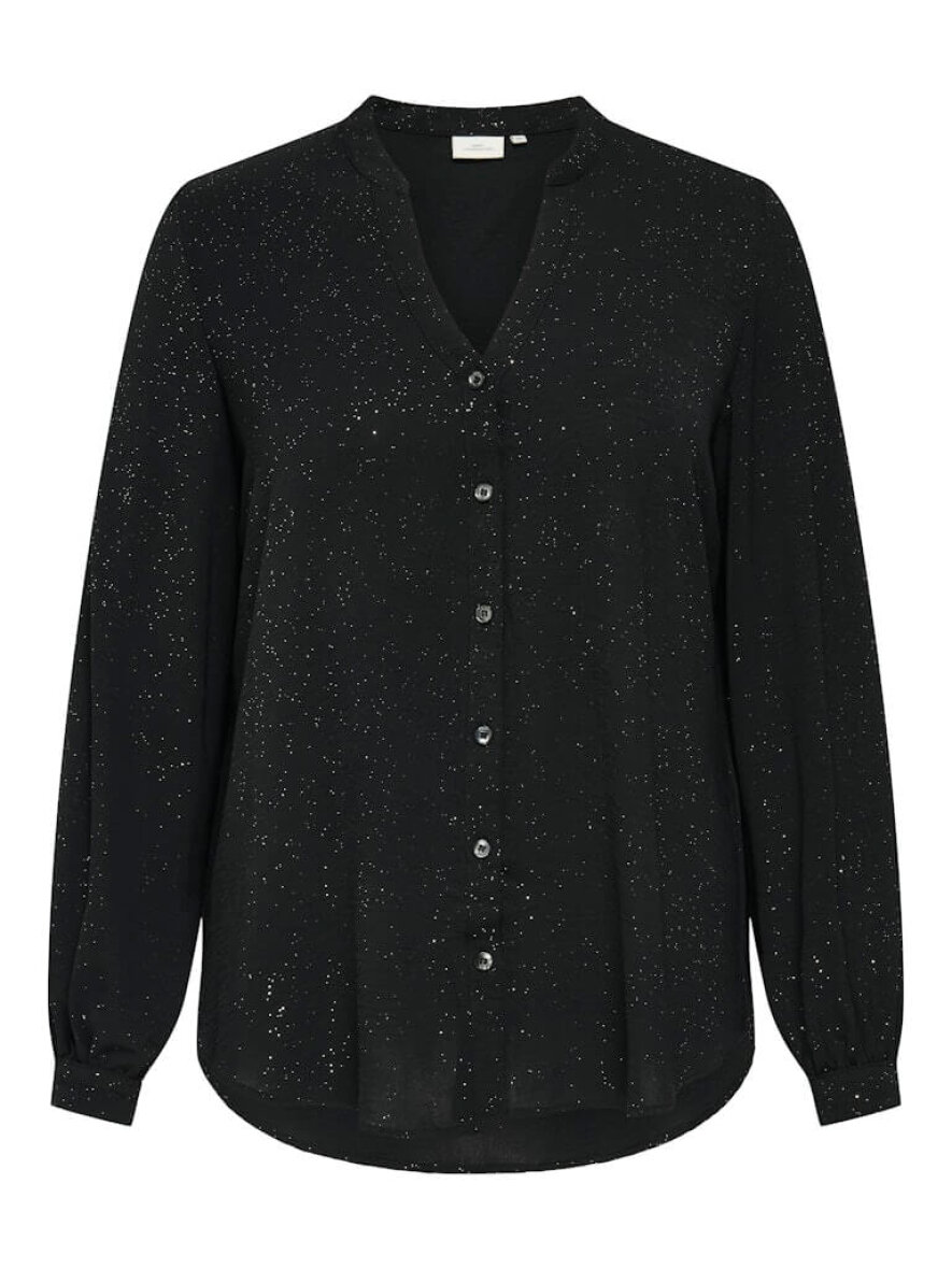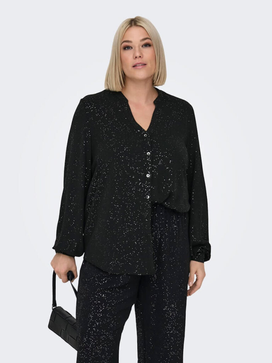 Only Carmakoma sort skjorte med det fineste glimmer design. En flot skjorte som gør sig godt til enhver festlig anledning, eller en hverdag som skal have et pift med glitter og glimmer.