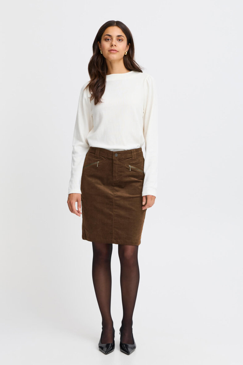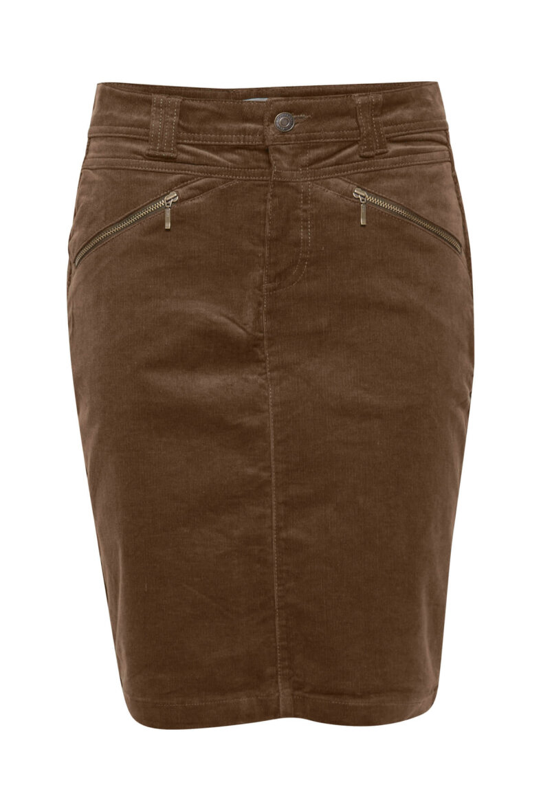 FRANSA nederdel i en lækker blød fløjlskvalitet i en flot brun farve, som tilføjer varme til outfittet. Det bløde fløjlsstof har en let struktur og et naturligt fald, der giver nederdelen en flatterende silhuet og masser af bevægelse.