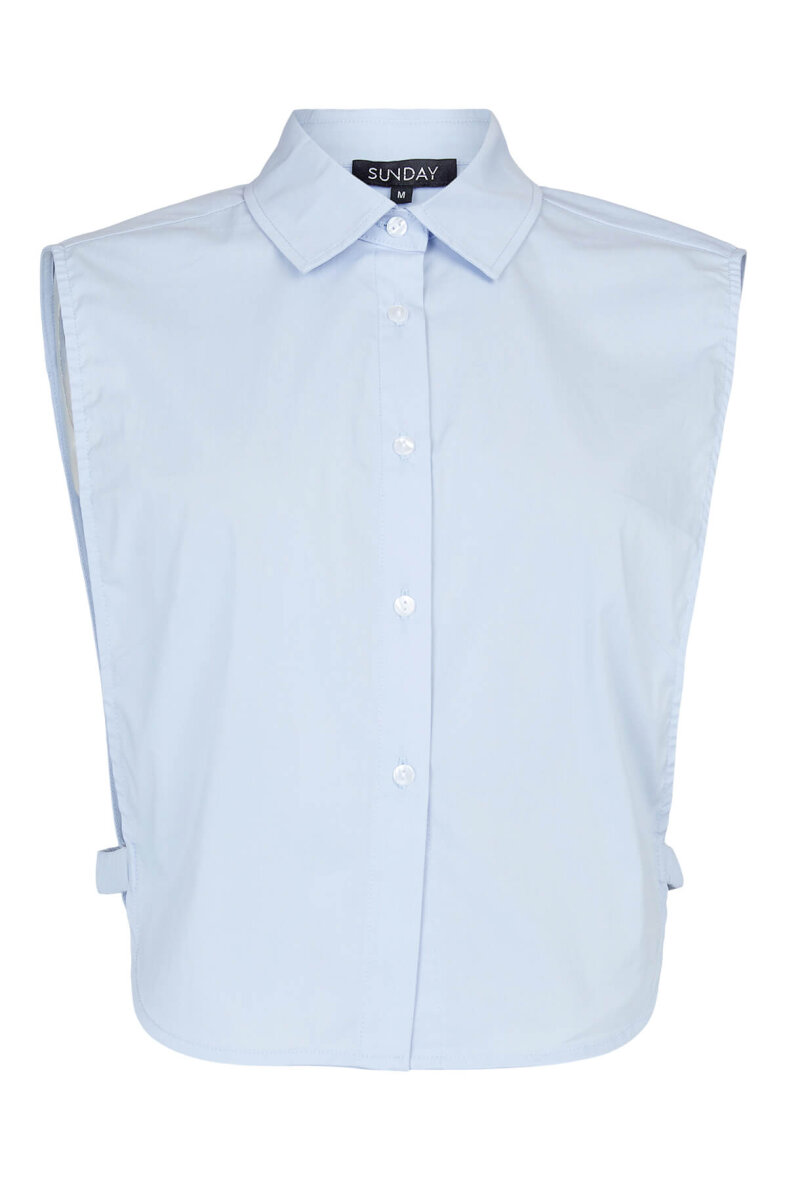 Smart lyseblå skjortekrave fra Sunday. Snydekraven er perfekt til at tage under en strik eller en bluse, hvor man kan lade den stilfulde skjortekrave titte frem.