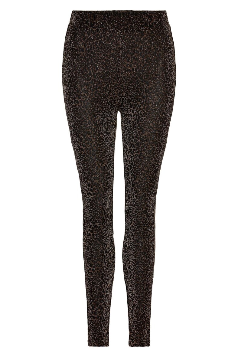 Smarte guld-glimmer leggings med leopard mønster. De sidder til nedad benet og har en elastikkant i taljen.
