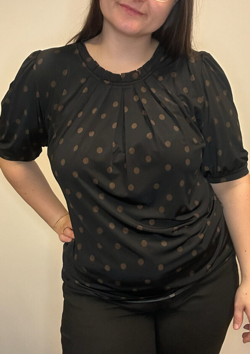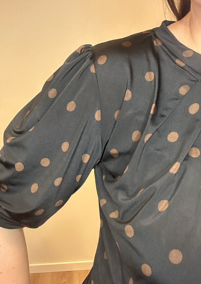 Smuk bluse fra IN FRONT i den populære Grazia model. Blusen er med sort base og et brunt prikket mønster.