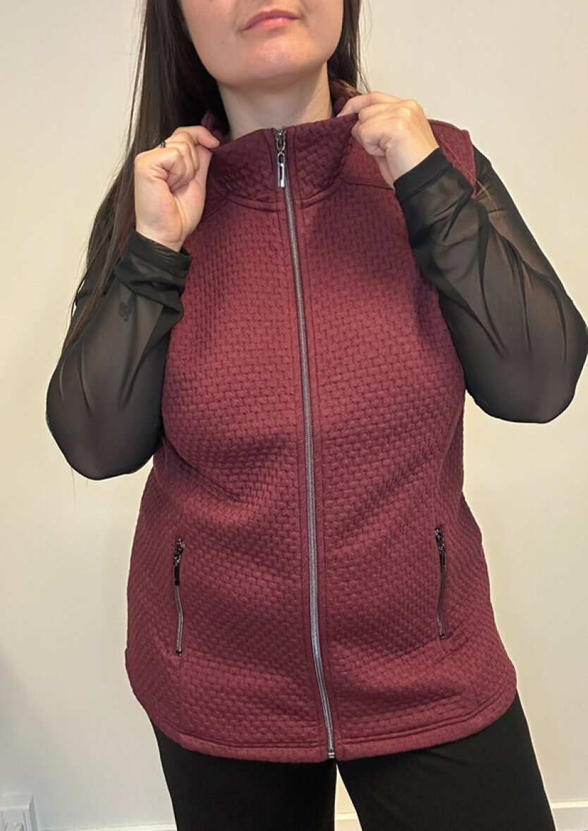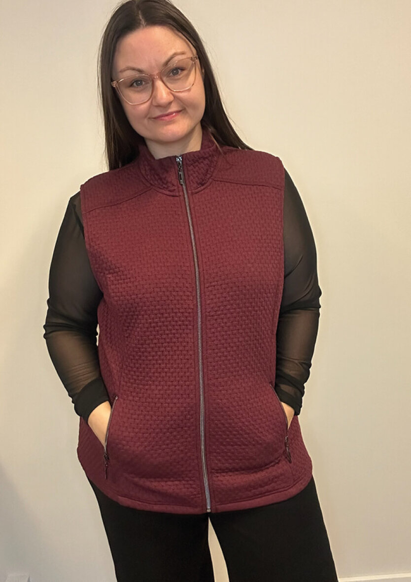 Dejlig blød vest fra Brandtex i en flot vinrød farve. Vesten er lavet i et tidsløst design med let struktur i designet, som er nem at style med diverse forskellige overdele.