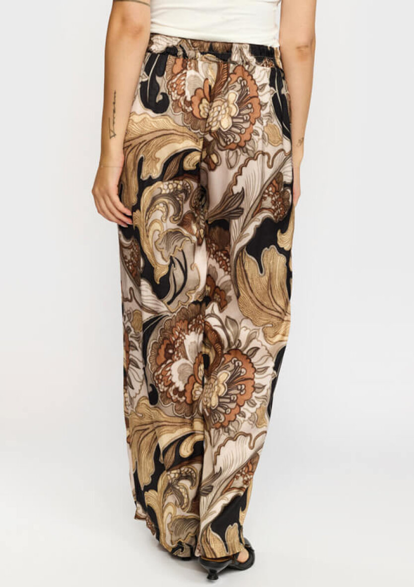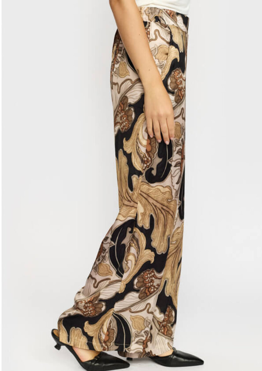 2-Biz buks i modellen Pennie i et flotteste print. Printet er i tonerne brun, beige og sort med iøjefaldende store guld blade som pryder printet.