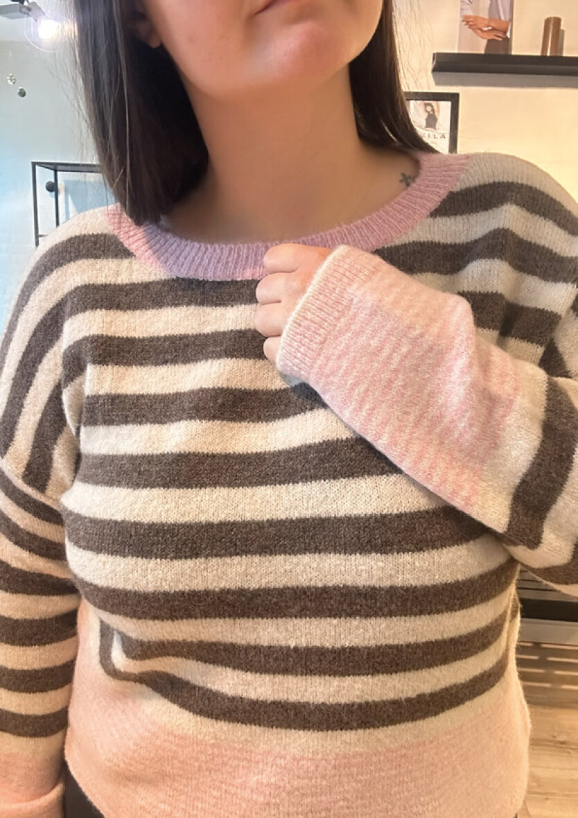 Marta Du Chateau striktrøje i en flot farvekombination af cremefarvet base med brune og lyserød stribet design.