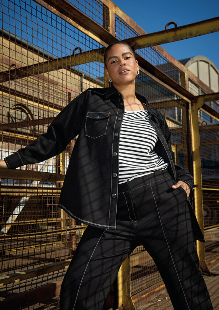 Stoffet er blødt og fleksibelt, hvilket gør jakken ideel til både hverdagsbrug og som et trendy lag til dine outfits. Brug den sammen med jeans, bukser eller kjole for et smart og moderne outfit. En alsidig garderobefavorit med masser af attitude.