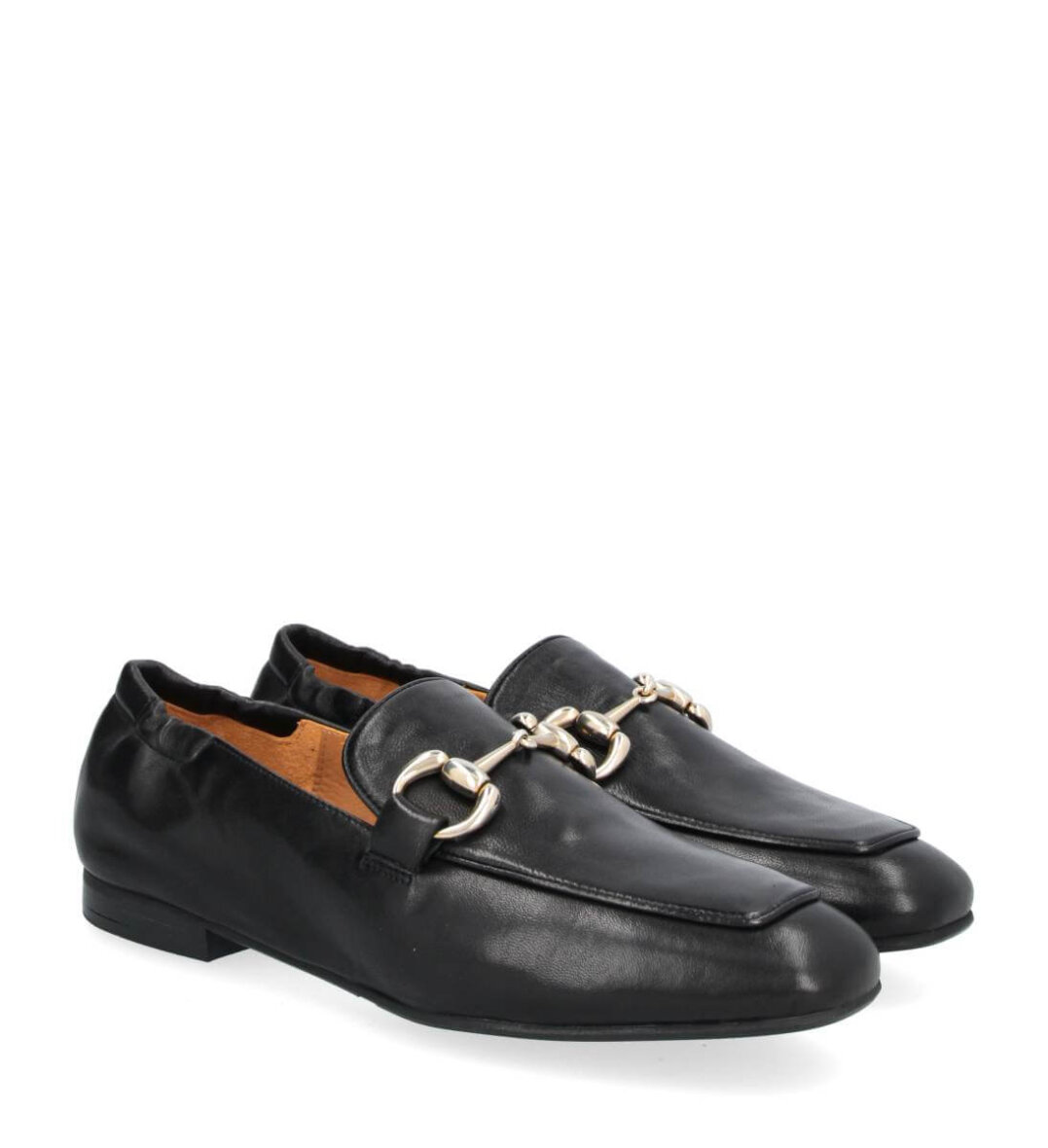 Lækker håndlavet sort loafers fra Billi bi. Skoen er udført i sort glat skind med en flot og dekorativ guld spænde over forfoden.