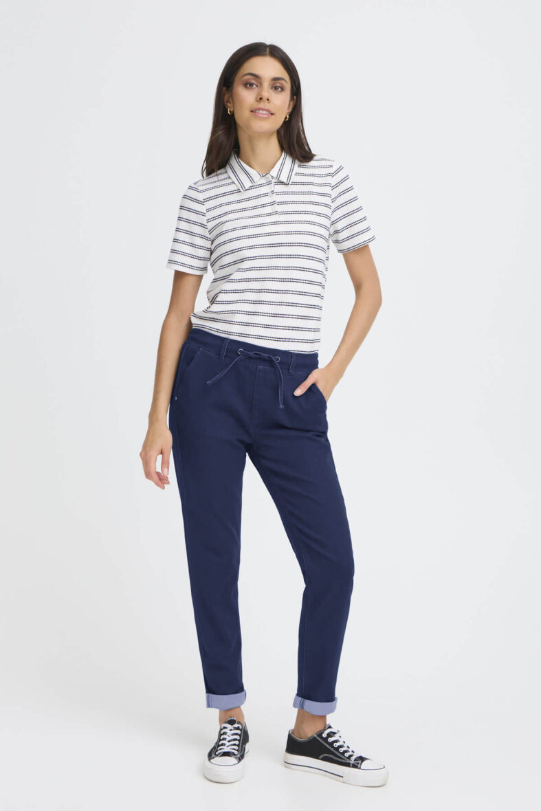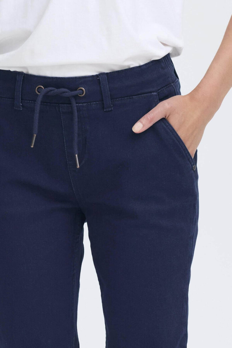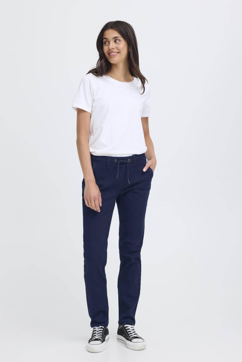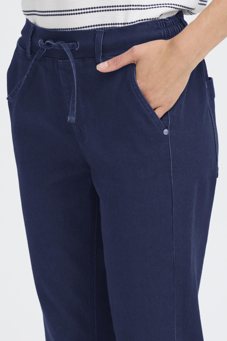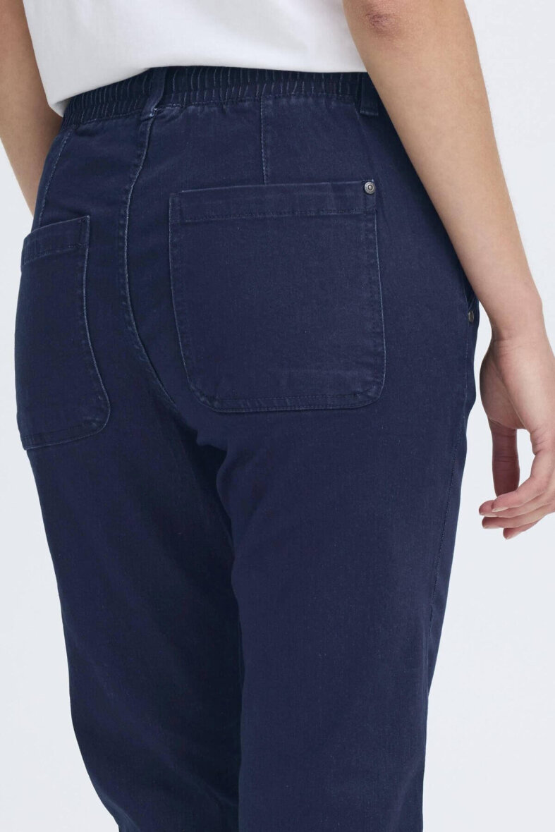 FRANSA buks i en afslappet joggingbuks model i en mørkeblå denim kvalitet.