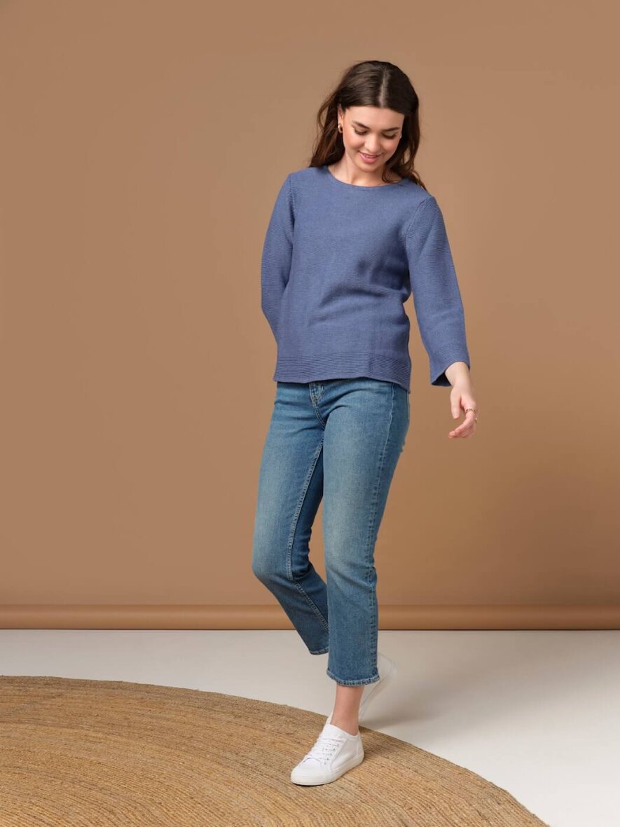 En alsidig strik, der nemt kan styles med både jeans og mere klassiske bukser – perfekt til både hverdag og arbejde.