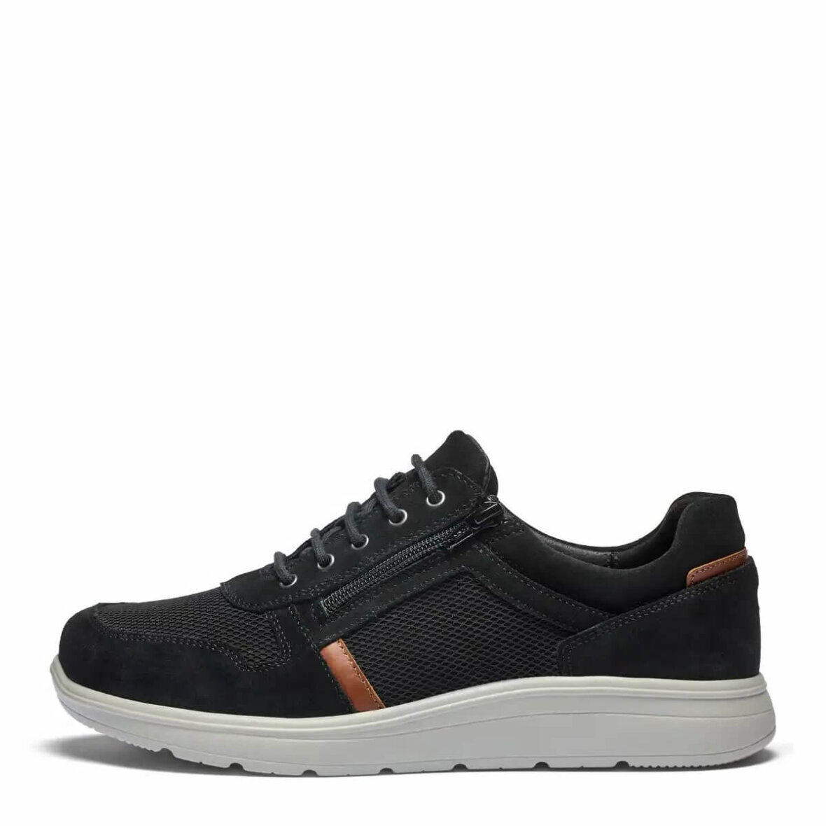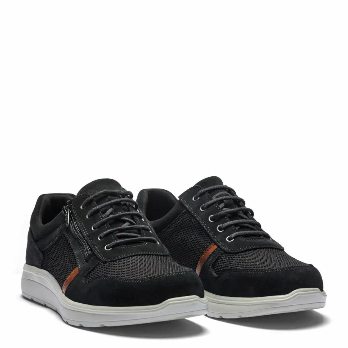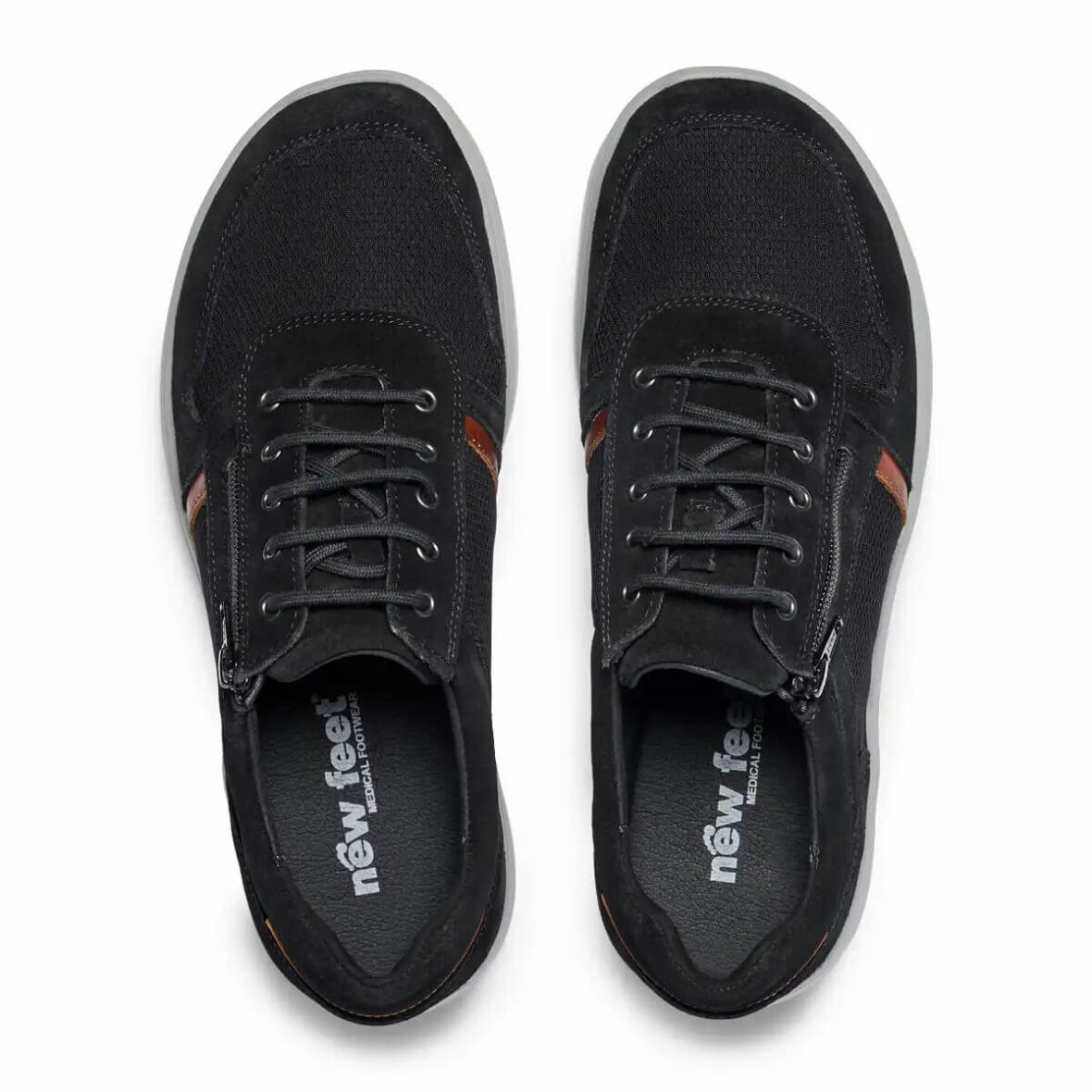 Komfortable herre sneakers fra New Feet i en flot sort farve med brune detaljer, som skaber et enkelt og tidsløst design.