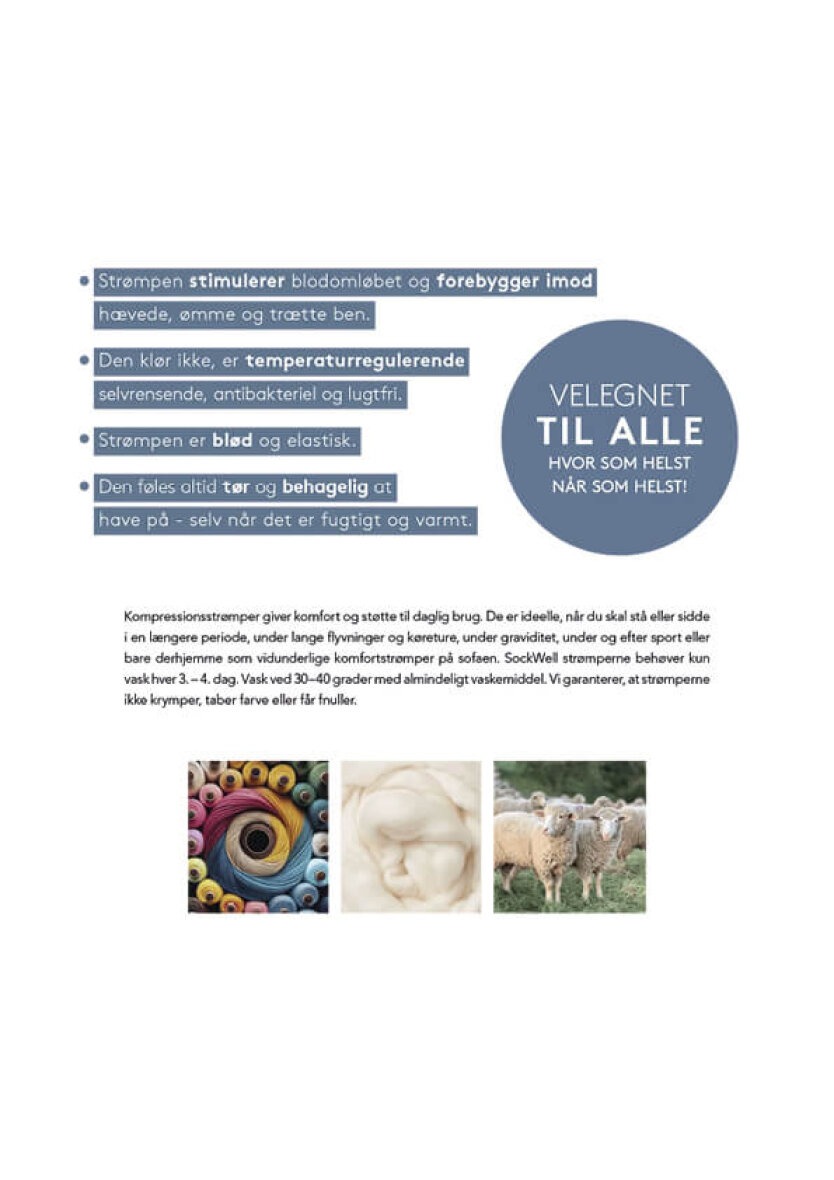 Med let kompression hjælper de moderigtige strømper med at stimulere blodcirkulationen, så du føler dig mere energisk – selv efter en lang dag på farten, ved skrivebordet eller på benene. Hævelse og træthed i fødder og ben mindskes.