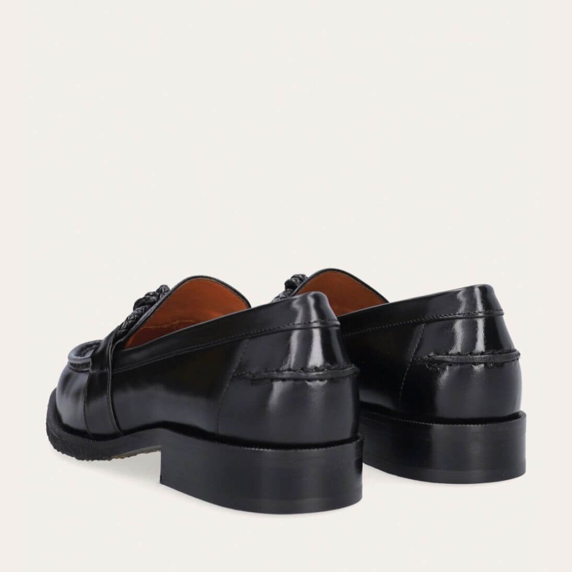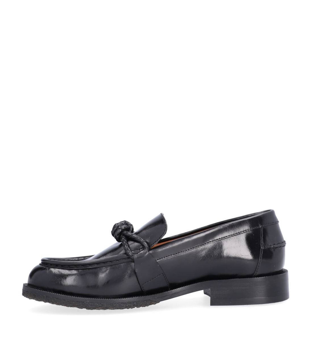 Billi bi loafers i sort glat skind med rund snude og en elegant knudedetalje i sort flettet skind hen over fronten. Den håndlavet loafer er lavet i et tidsløst design, som kan bruges til enhver anledning og sæson.
