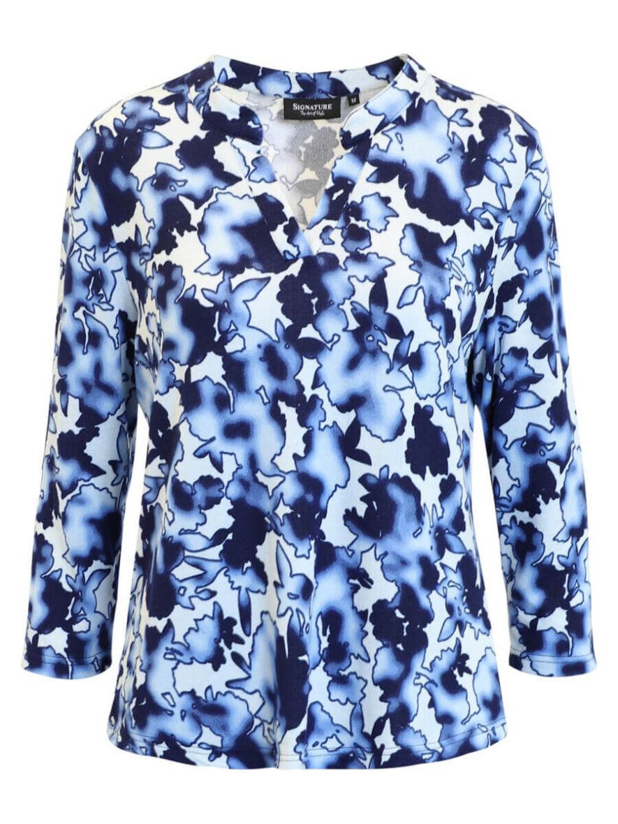 Signature bluse i et flot grafisk print i blå nuancer. Et skønt blå print som er nem at style med diverse underdele.
