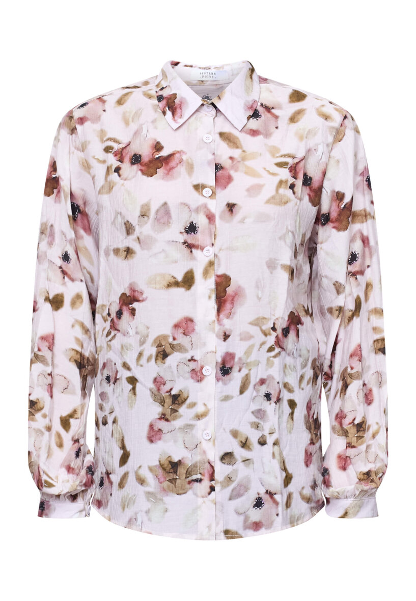 Flot lys rosa farvet skjorte med det fineste blomstret print fra Sisters Point. Skjortens enkle blomsterprint i rosa, grønne og beige nuancer, gør skjorten nem at style med diverse bukser, jeans og nederdele og skabe et flot og feminint look.