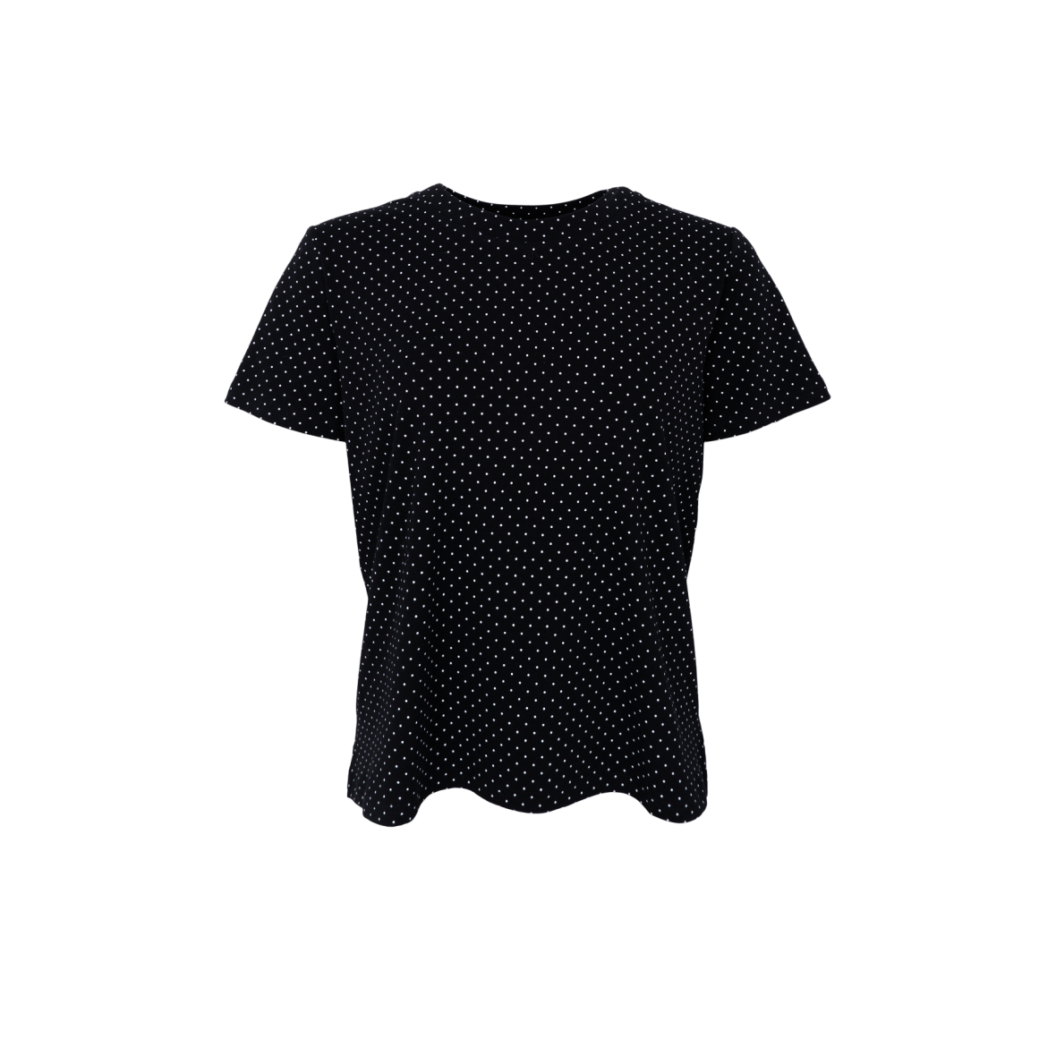 Black Colour t-shirt i en sort klassisk farve med hvid prikket mønster. T-shirten er med rund hals og korte ærmer og slids i siderne forneden. Den moderne prikket t-shirt er lavet i en dejlig blød bomuldskvalitet med stretch, der sikrer komfort hele dagen – uanset om du styler den med jeans, bukser eller en nederdel. Brug den alene for et casual look, eller under en blazer for et mere edgy, sammensat outfit.