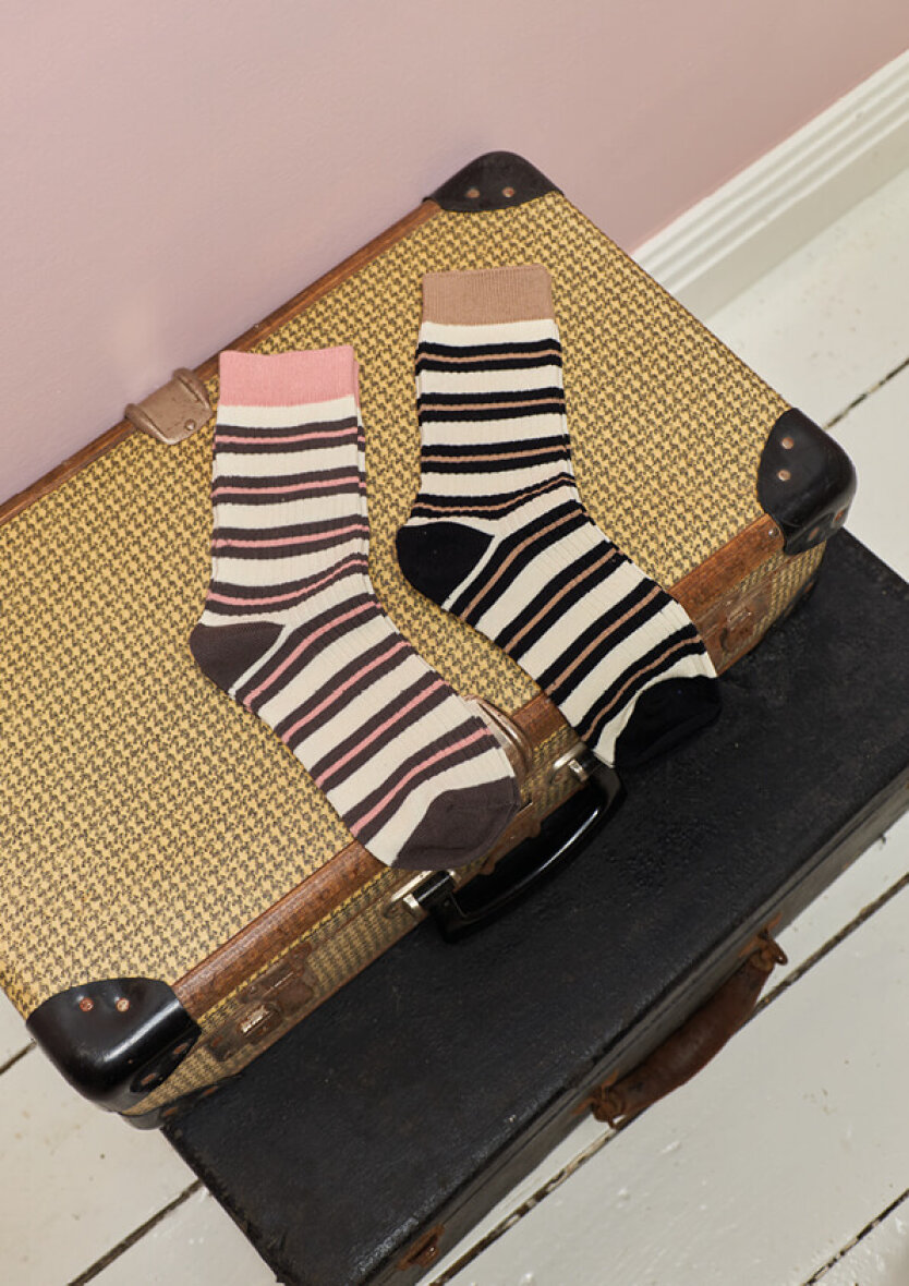 Flotte Black Colour bomuldsstrømper med masser stræk. Strømperne er lavet i et moderne stribet mønster med sand, lyserød og brune farver.