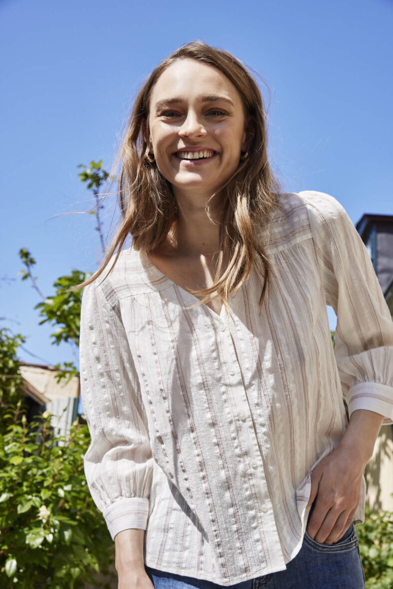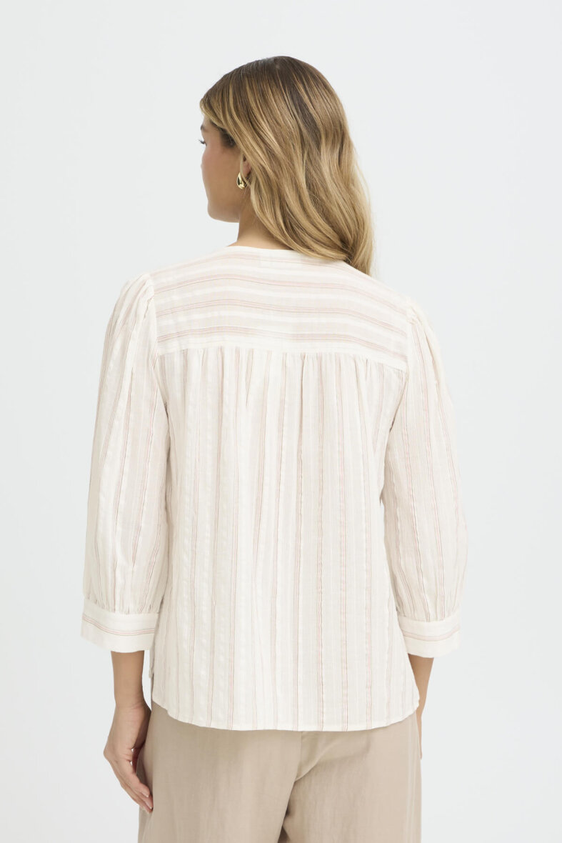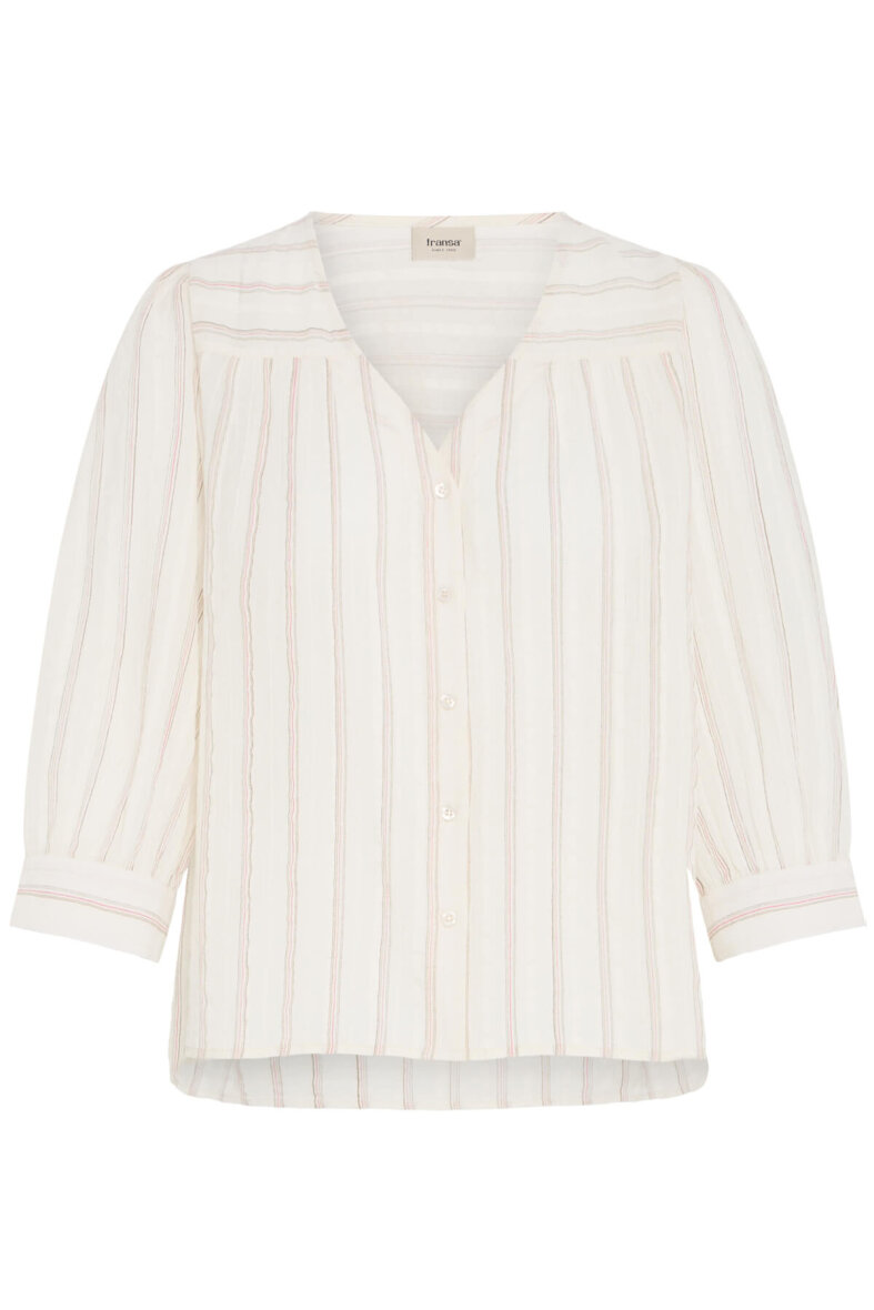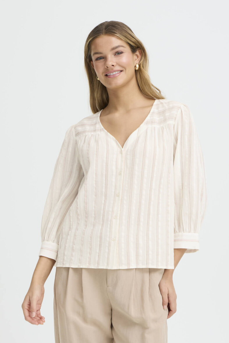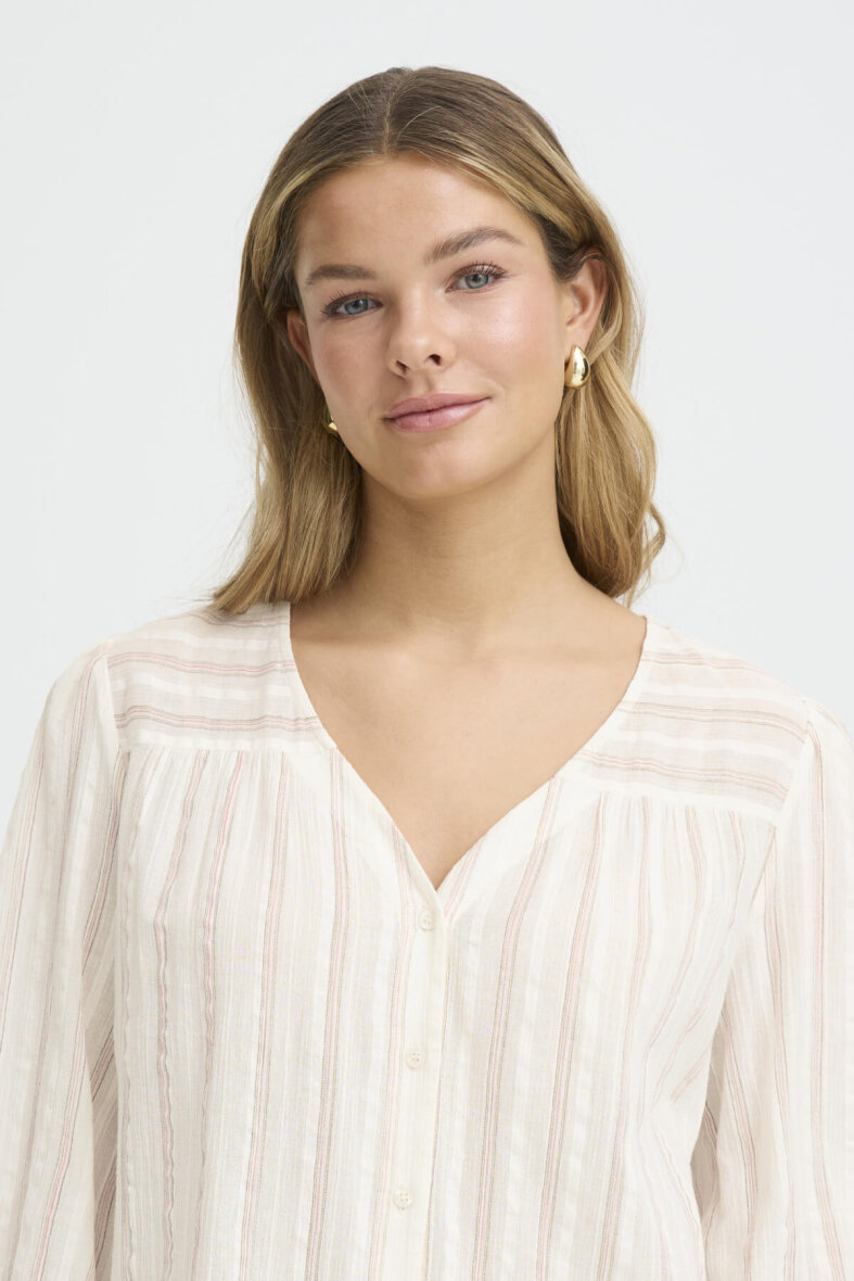 FRANSA skjorte i en rolig off white farve med et diskret stribet mønster i hvide, rosa og brune nuancer.