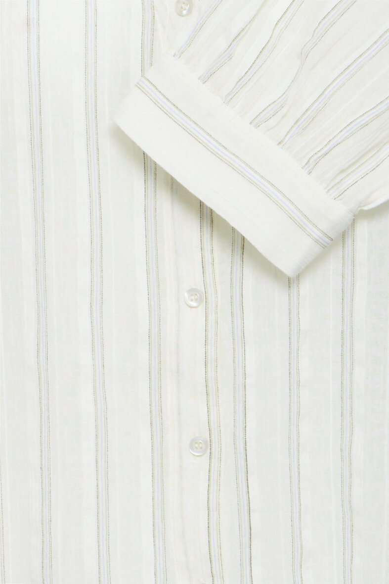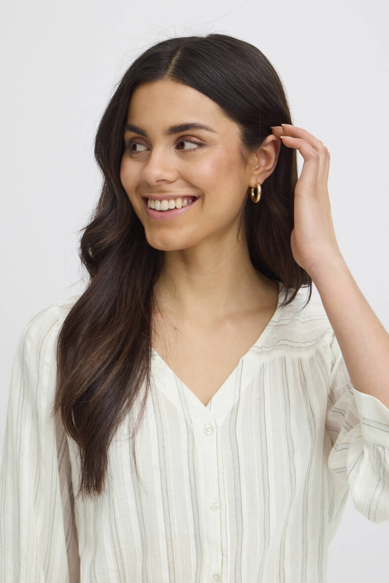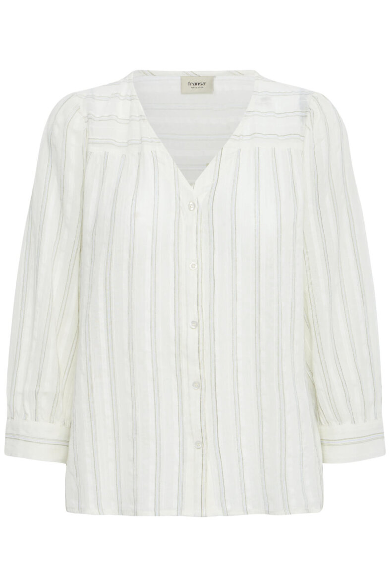 FRANSA skjorte i en rolig off white farve med et diskret stribet mønster i hvide, blå og grønne nuancer.