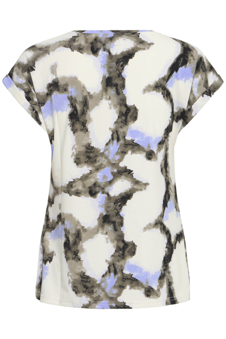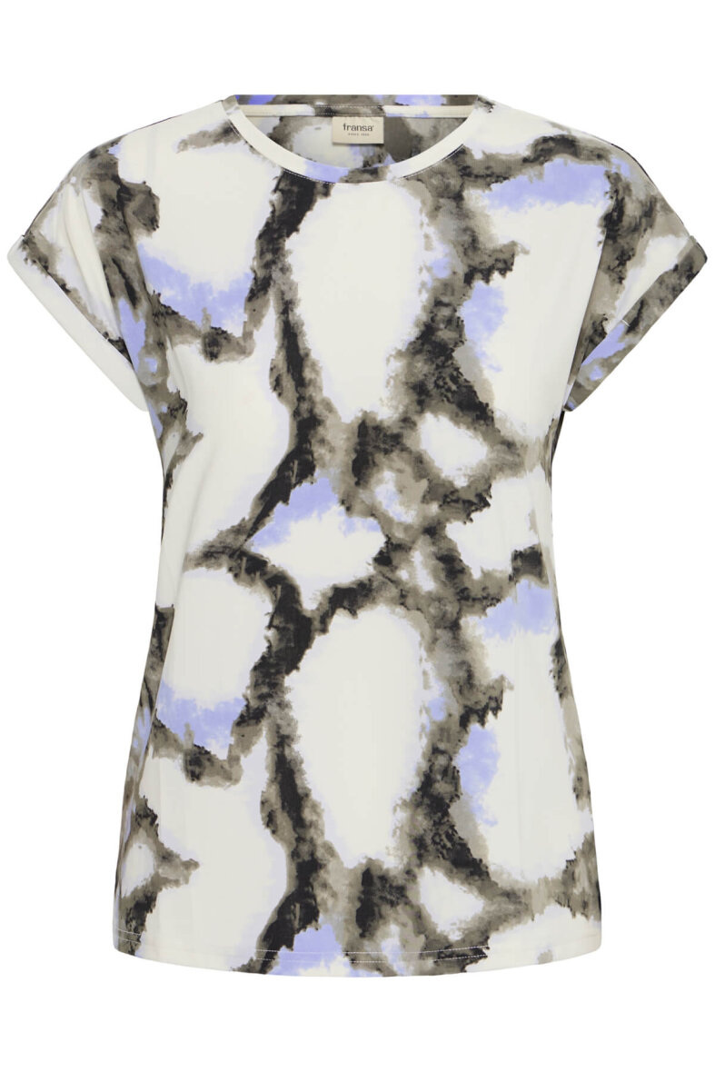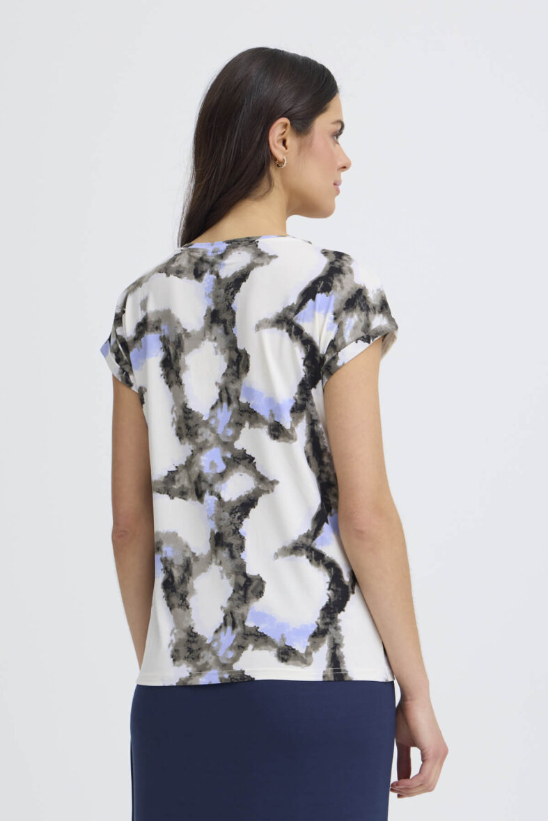 Fransa t-shirt i et flot abstrakt print i blå og grå toner på t-shirtens off white base farve.