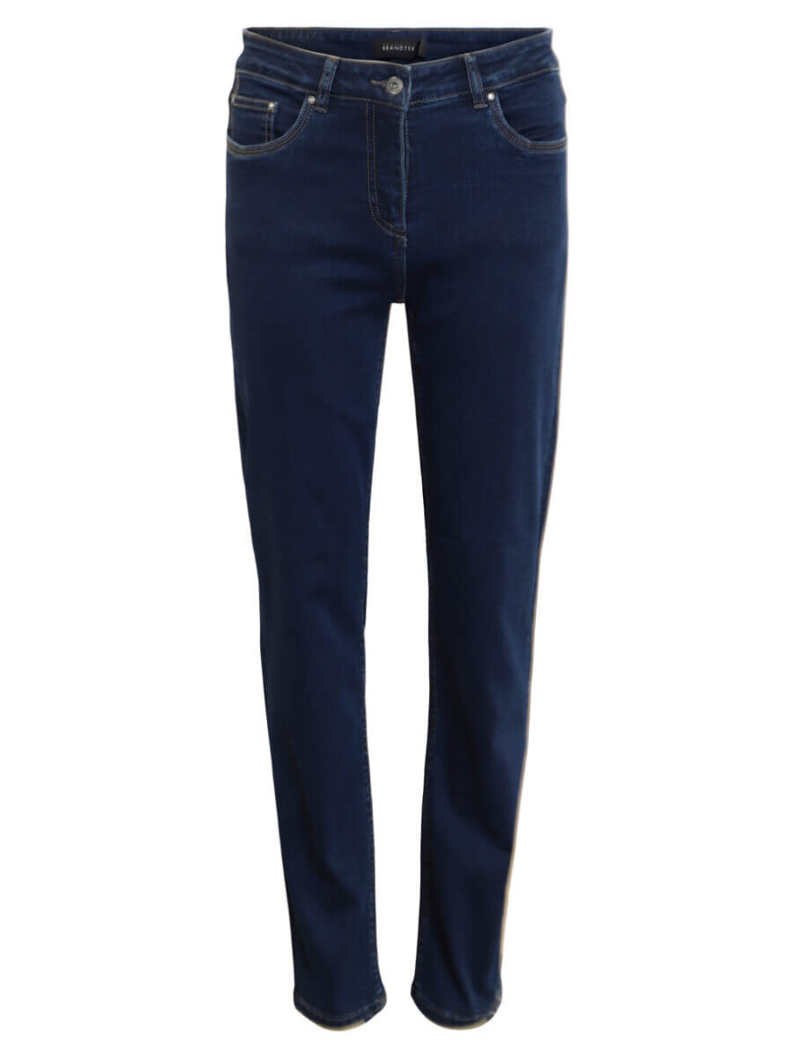 Disse Brandtex jeans er lavet i et klassisk jeans design med knapluk og lynlås, 5 lommer og bæltestropper. Buksen er med stræk i materialet, hvilket gør dem utrolig behagelig at have på.