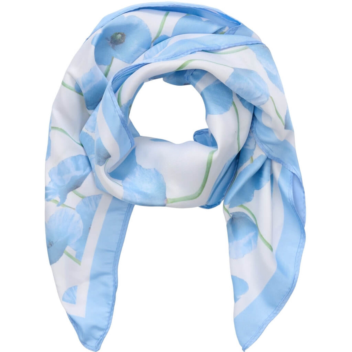 Tørklædet er i et smukt blå blomstret print i et enkelt og elegant design.